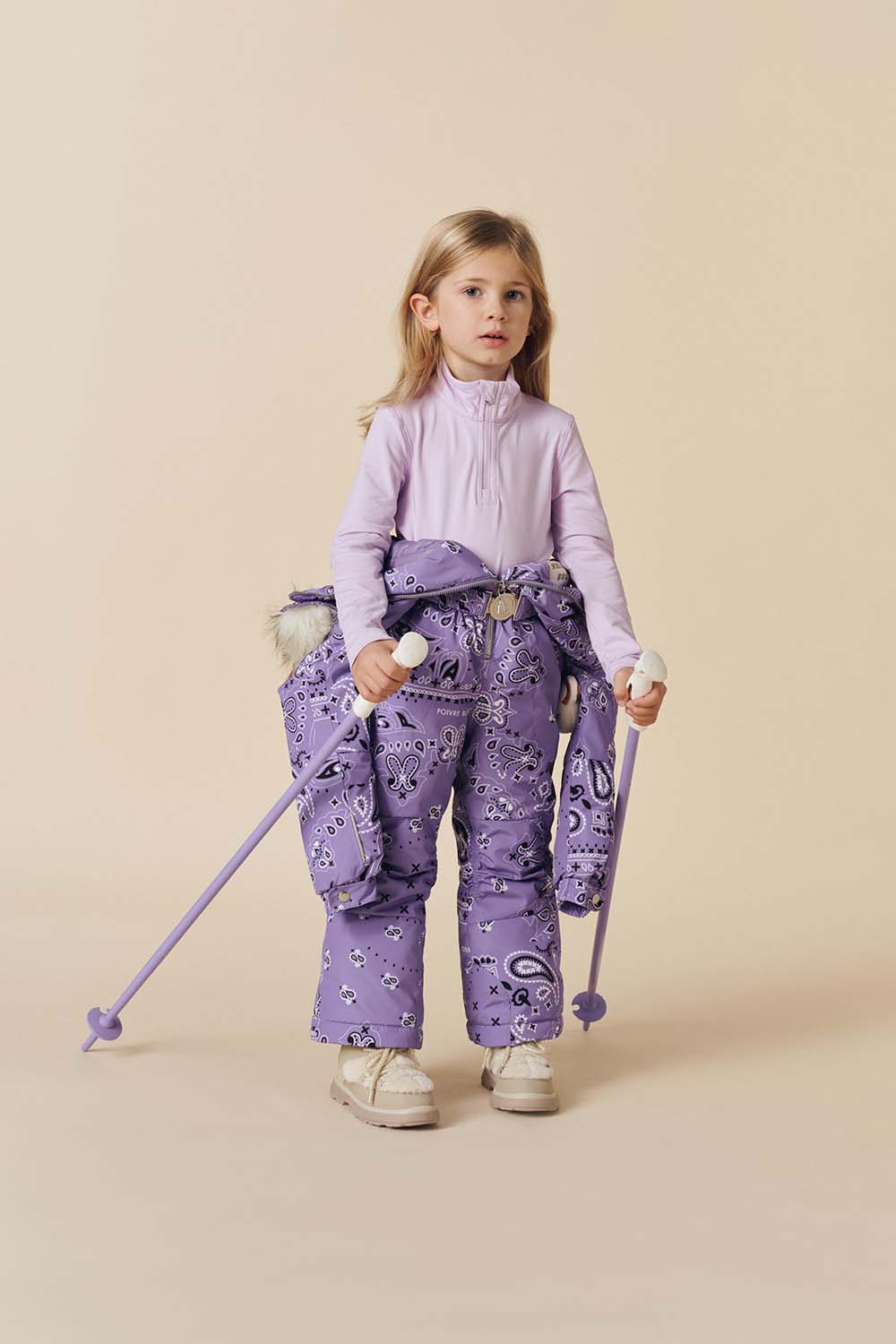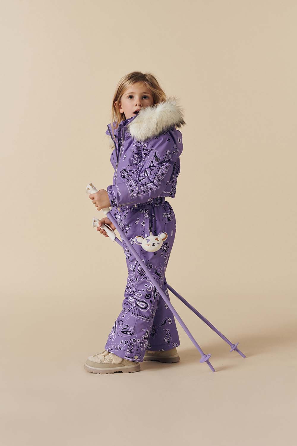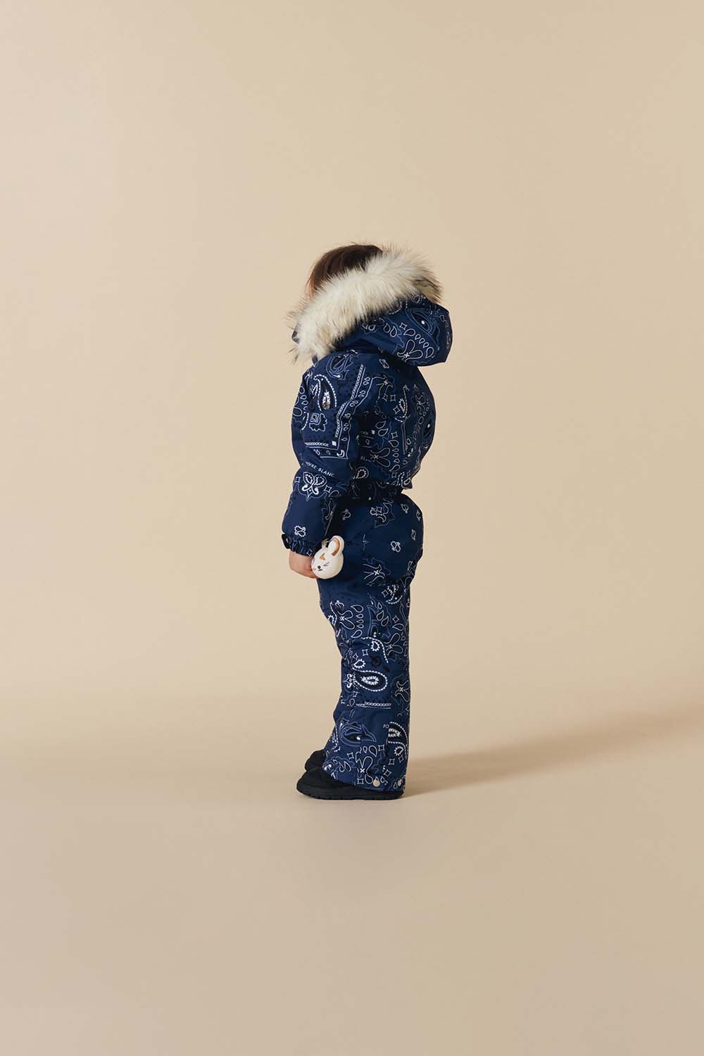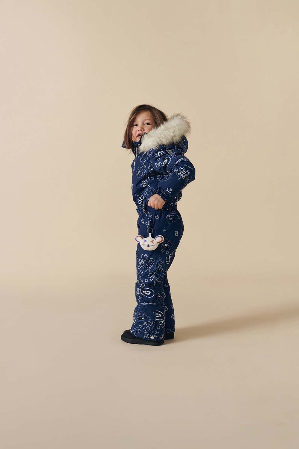 Designed for little adventurers, the Joyce Overall in Poivre Blanc’s iconic Bandana print offers warmth and reliable coverage with irresistible charm.