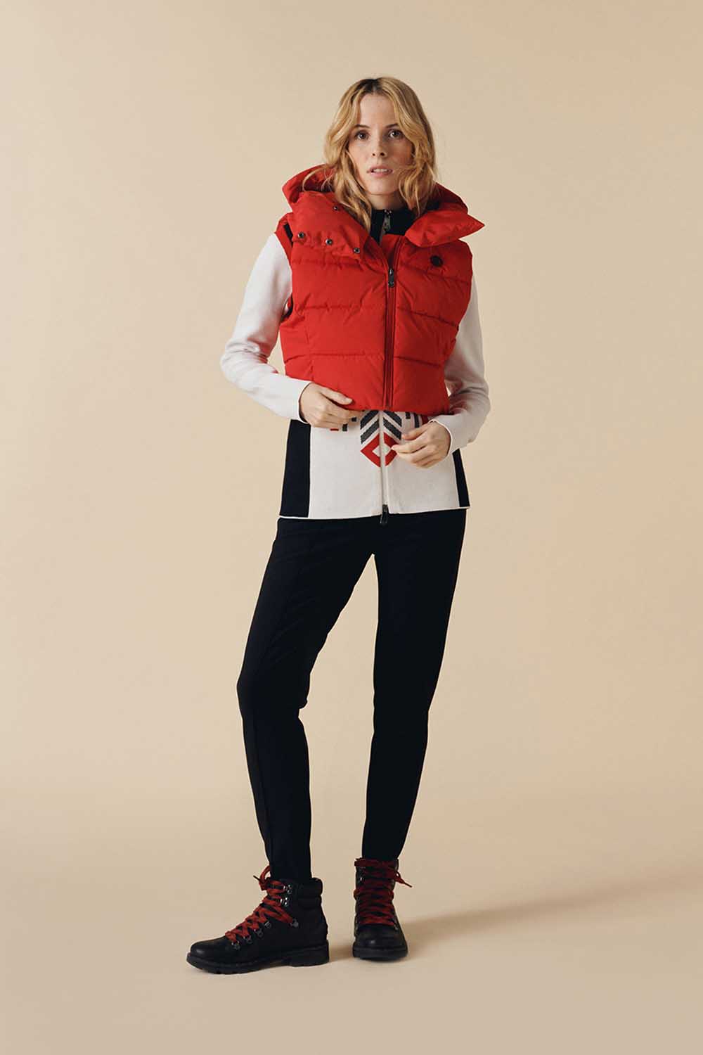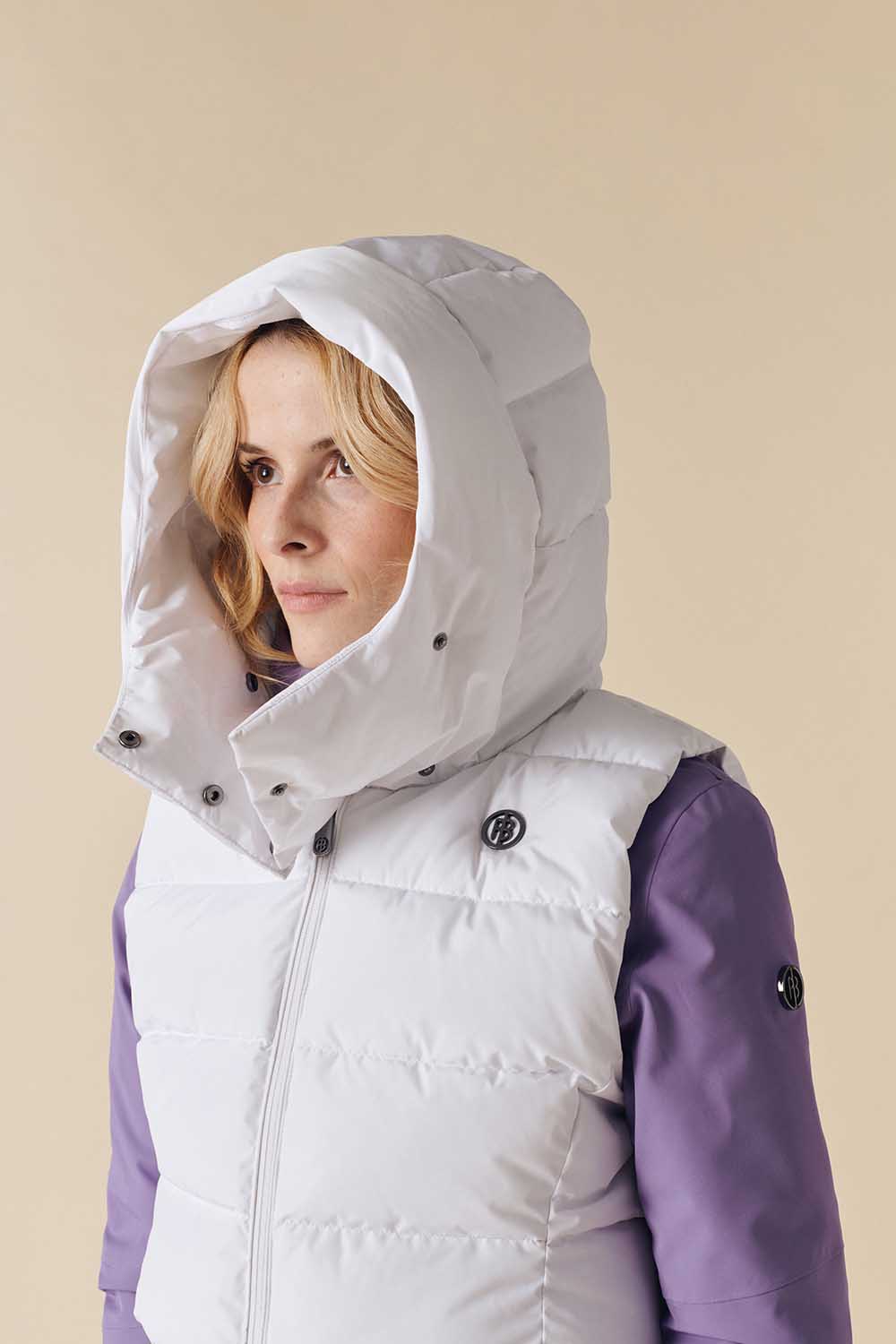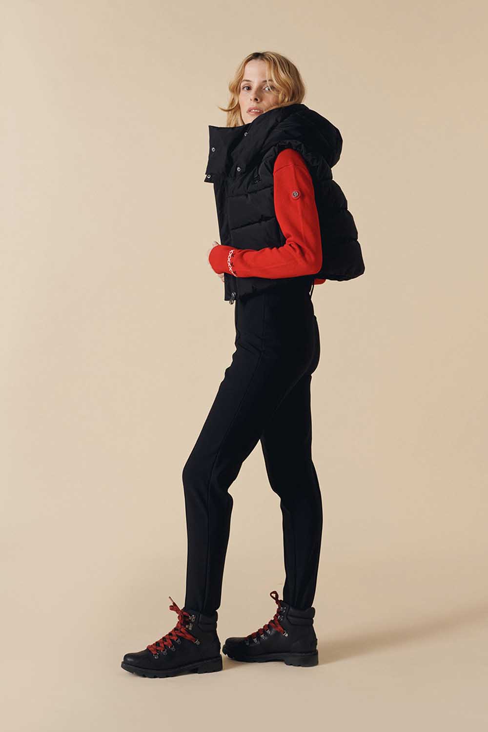 Cindy Cropped Down Vest blends sporty design with chic elegance. Perfect for skiing or relaxing on the terrace, it keeps you comfortable and feminine.