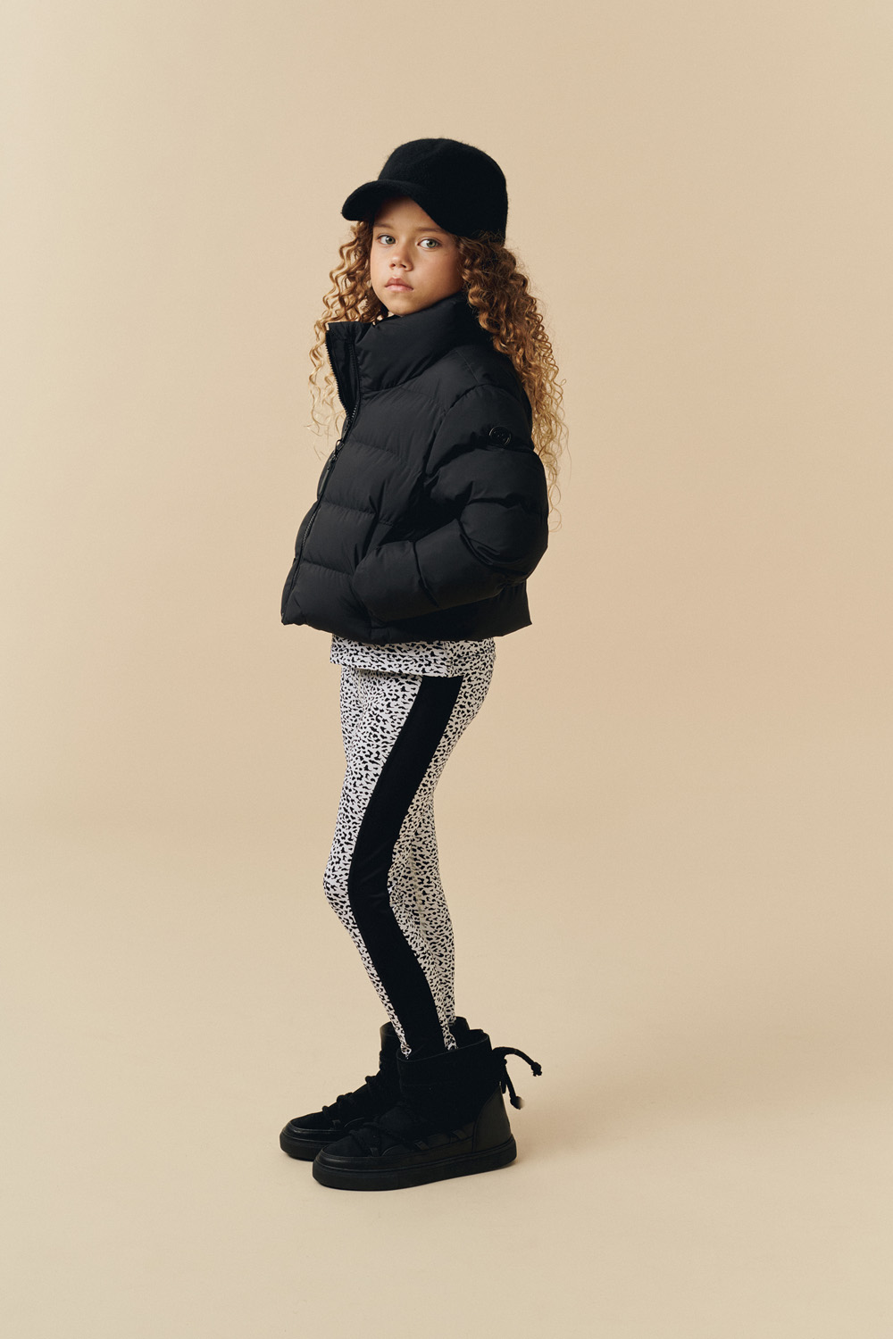 The Mae leggings designed in a stretchy printed fabric are perfect to wear under ski pants or as a loungewear outfit.