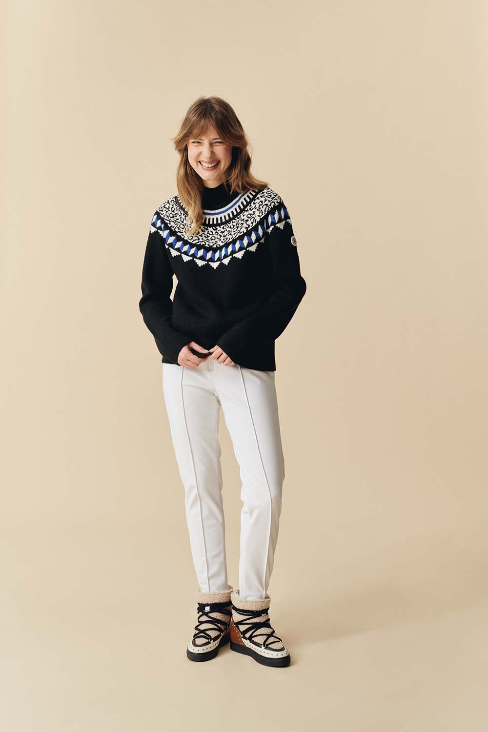 Its modern, wide cut is decorated with geometric jacquard patterns