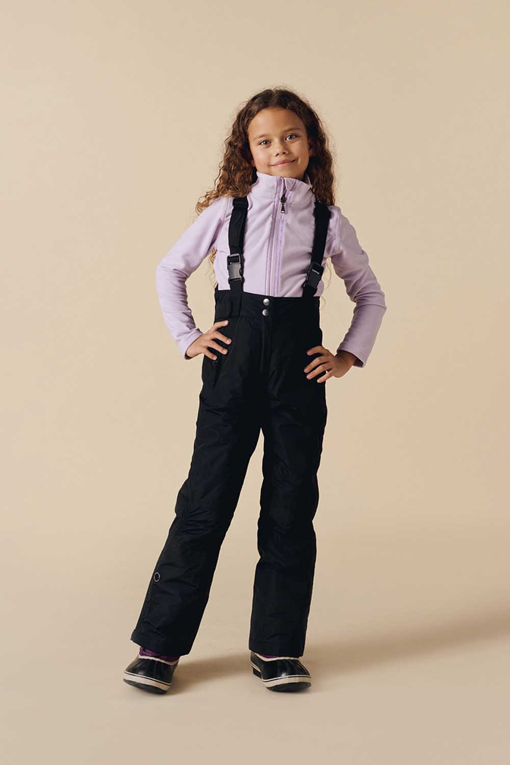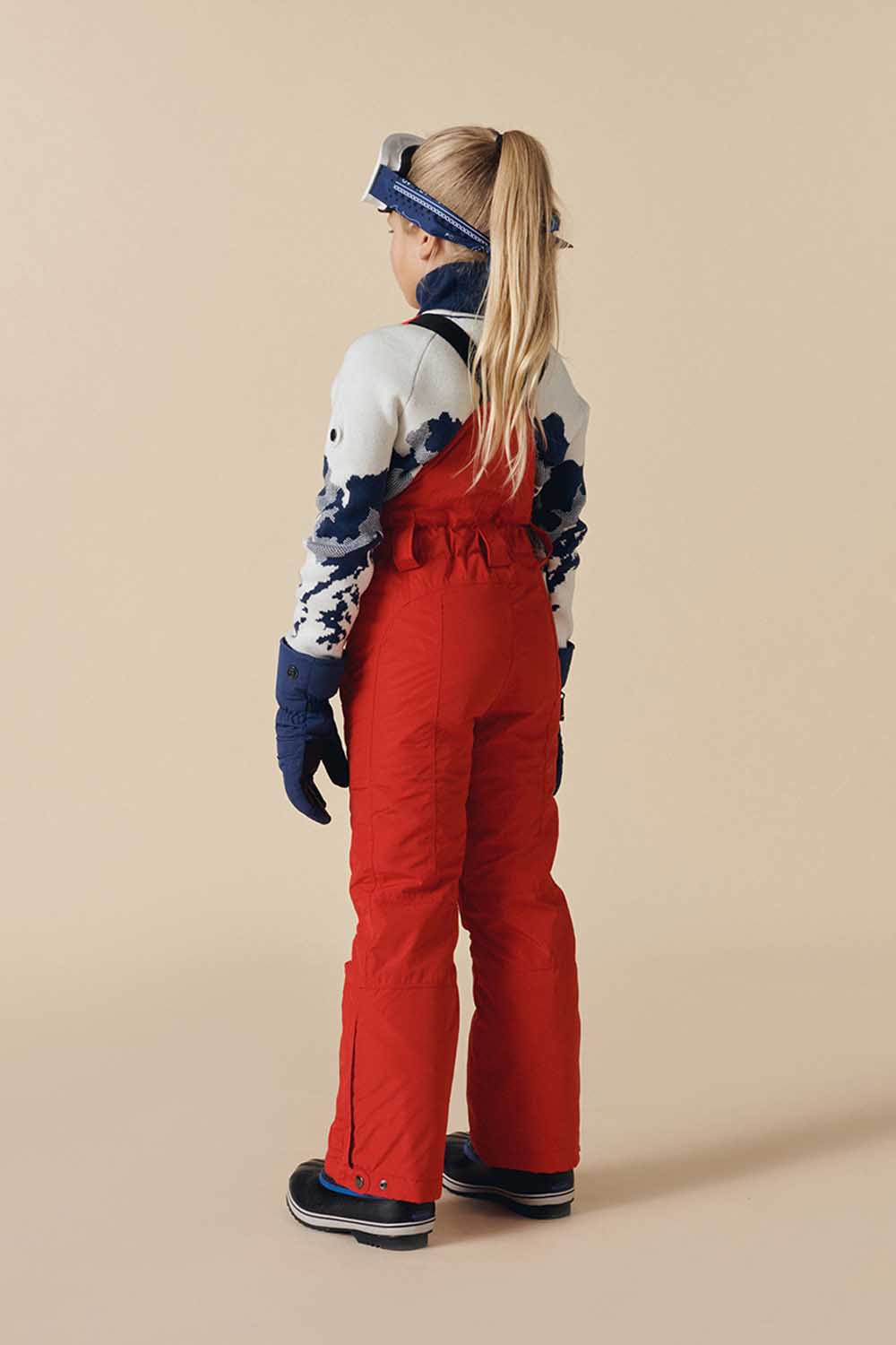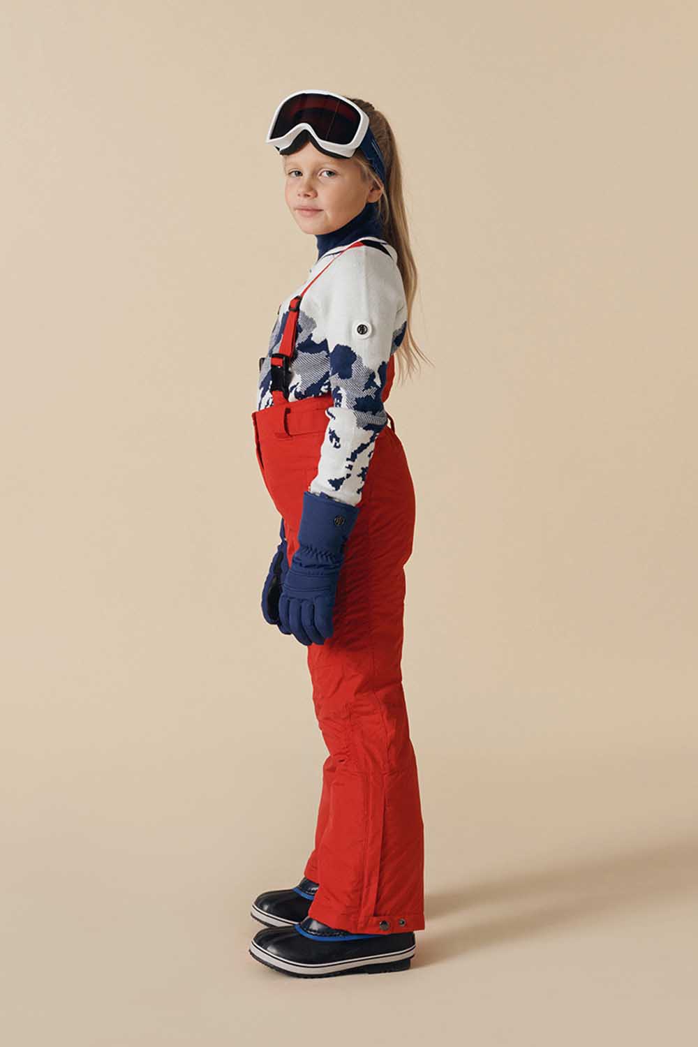 Fitted cut, adjustable braces and waistband, articulated knees, and zipped pockets allow junior skiers to move confidently.