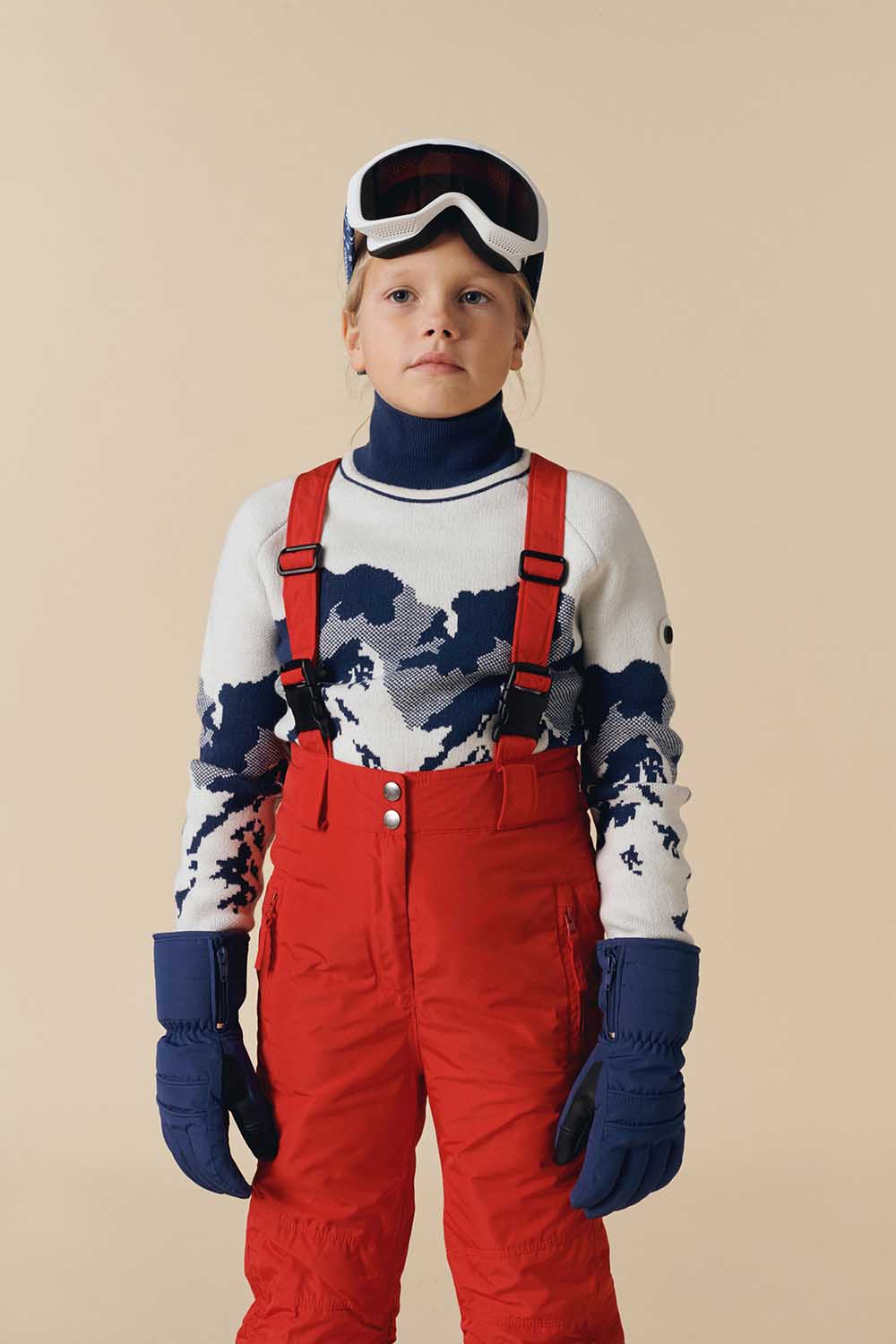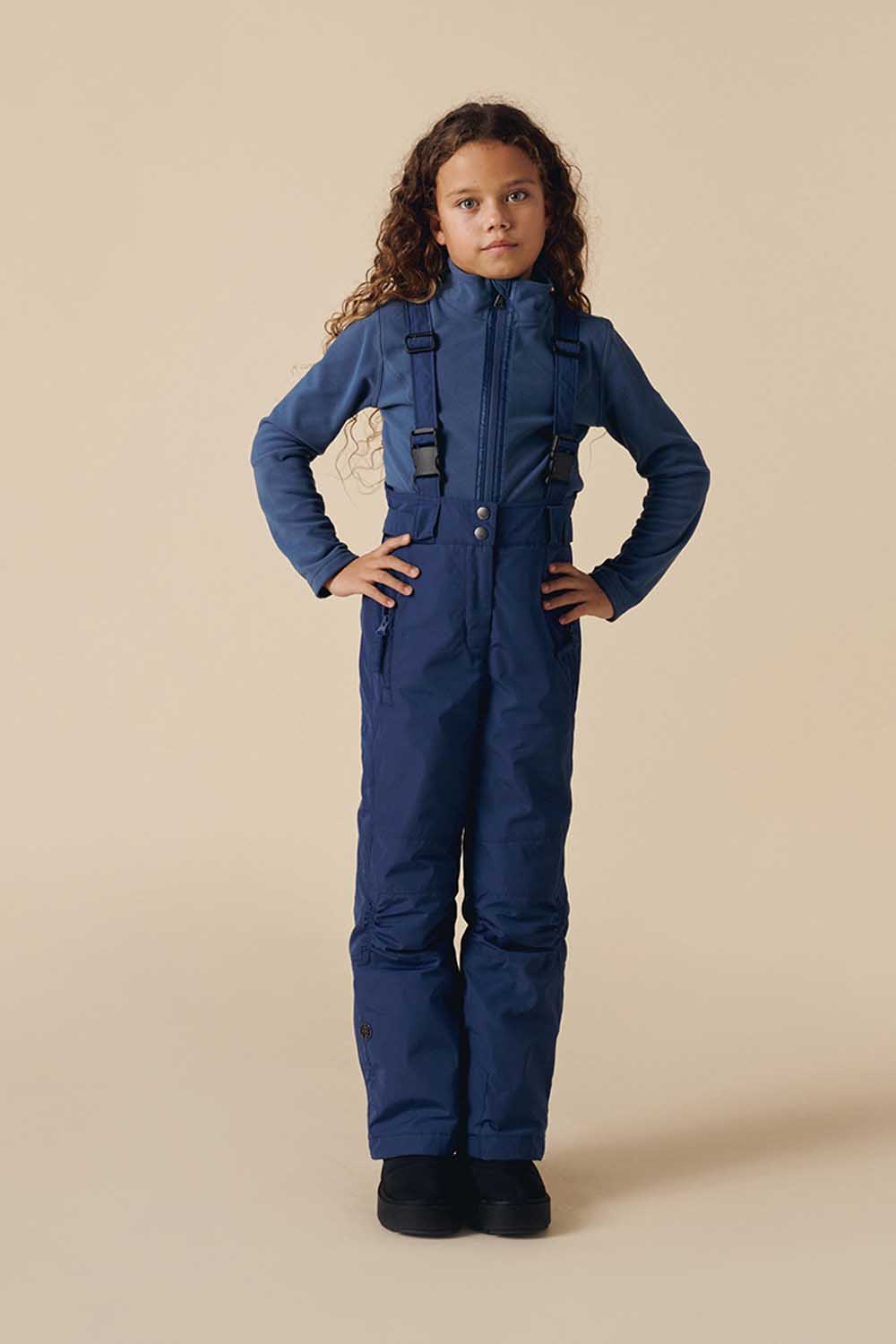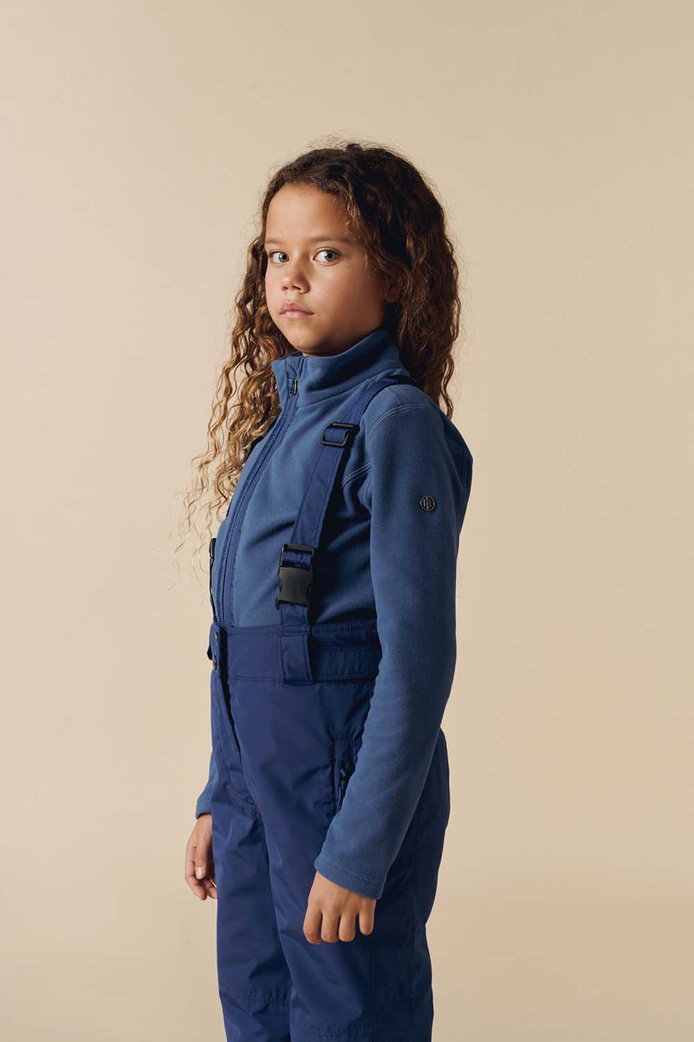 Fitted cut, adjustable braces and waistband, articulated knees, and zipped pockets allow junior skiers to move confidently.
