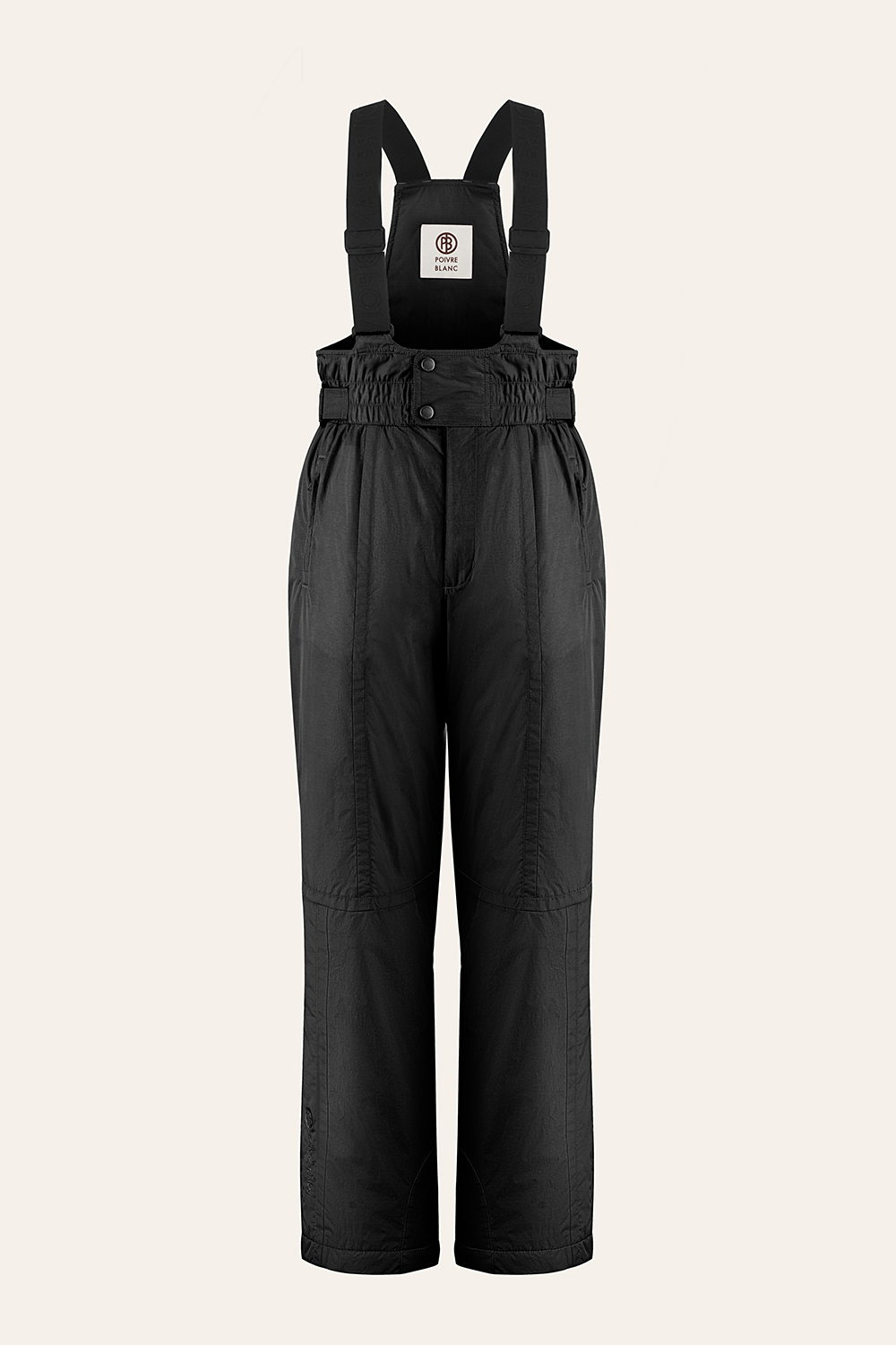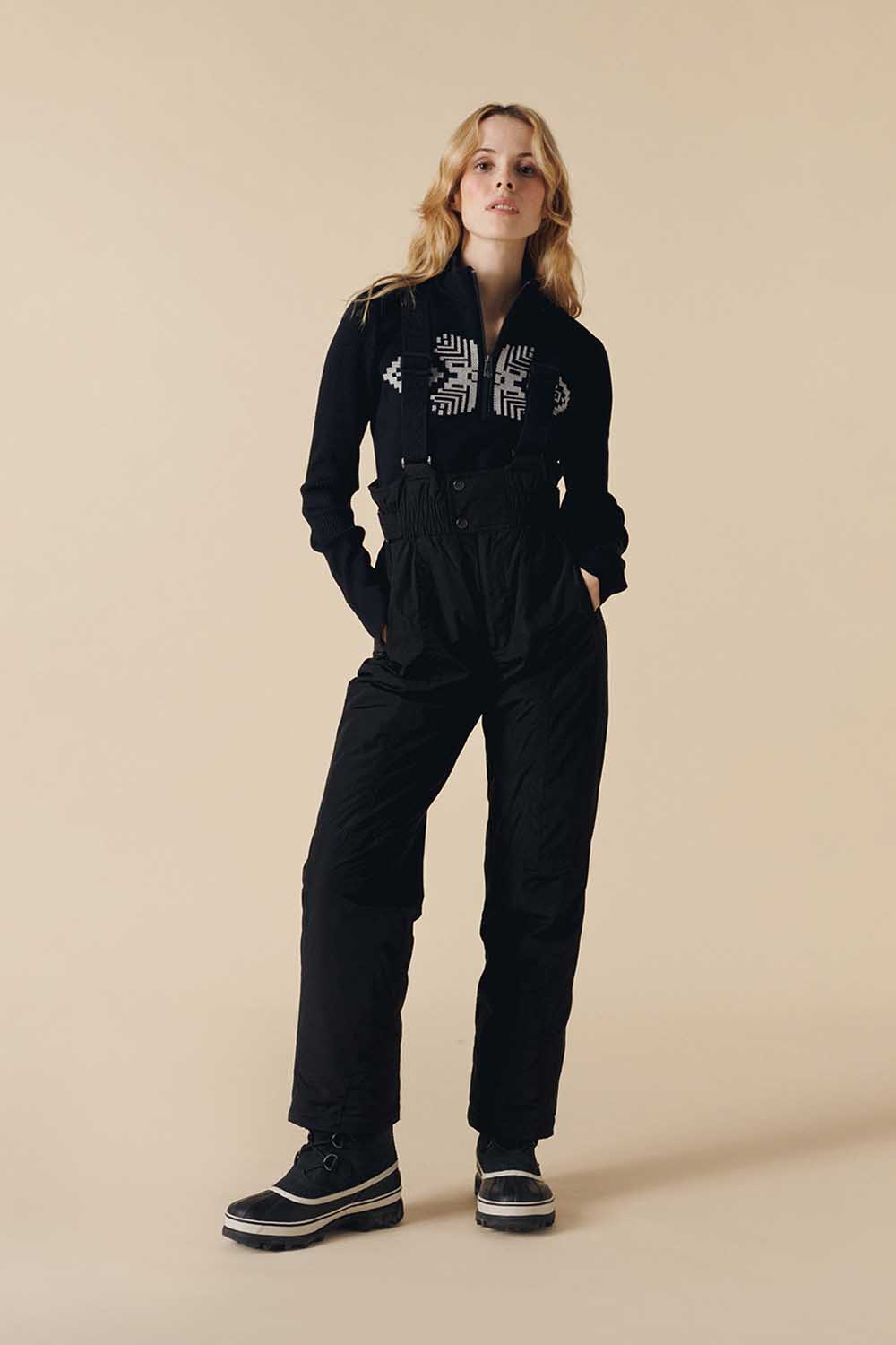 The high-waisted cut channels an ’80s silhouette while offering protection and comfort, making it a statement piece for skiers who value originality.