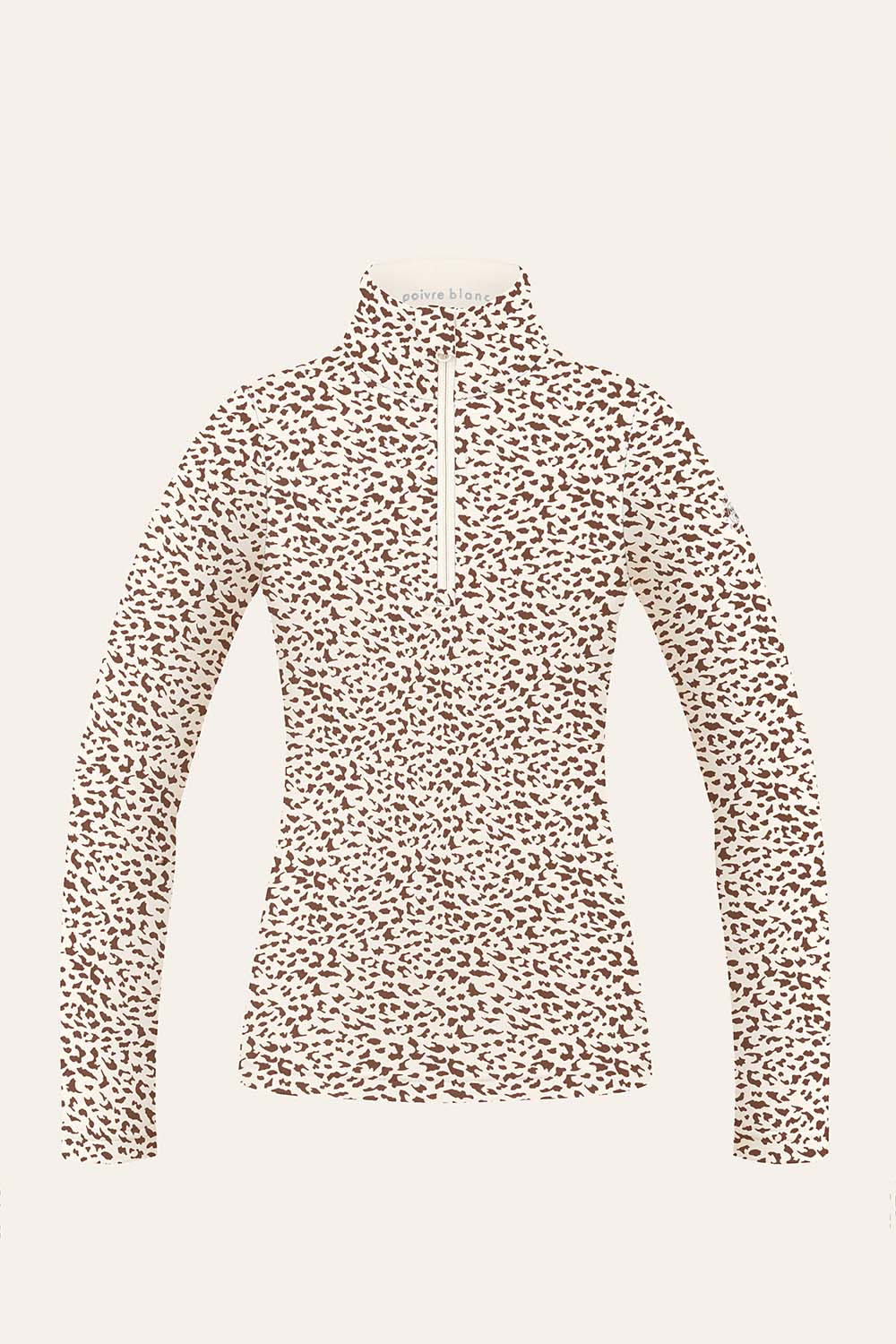 The Mia long-sleeved high-neck t-shirt designed in a stretchy printed fabric is perfect to be worn under a ski jacket or as a loungewear outfit.