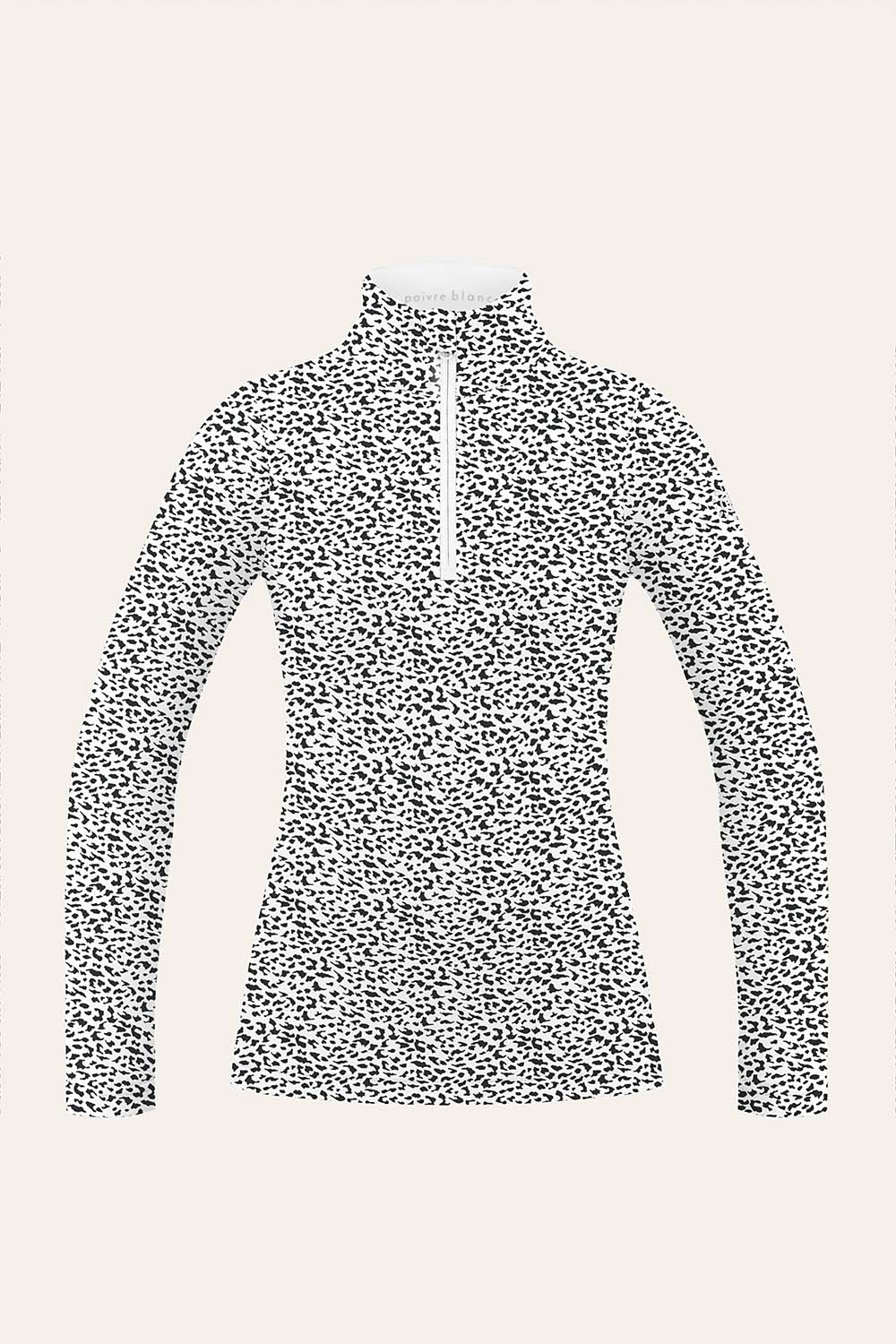 The Mia long-sleeved high-neck t-shirt designed in a stretchy printed fabric is perfect to be worn under a ski jacket or as a loungewear outfit.