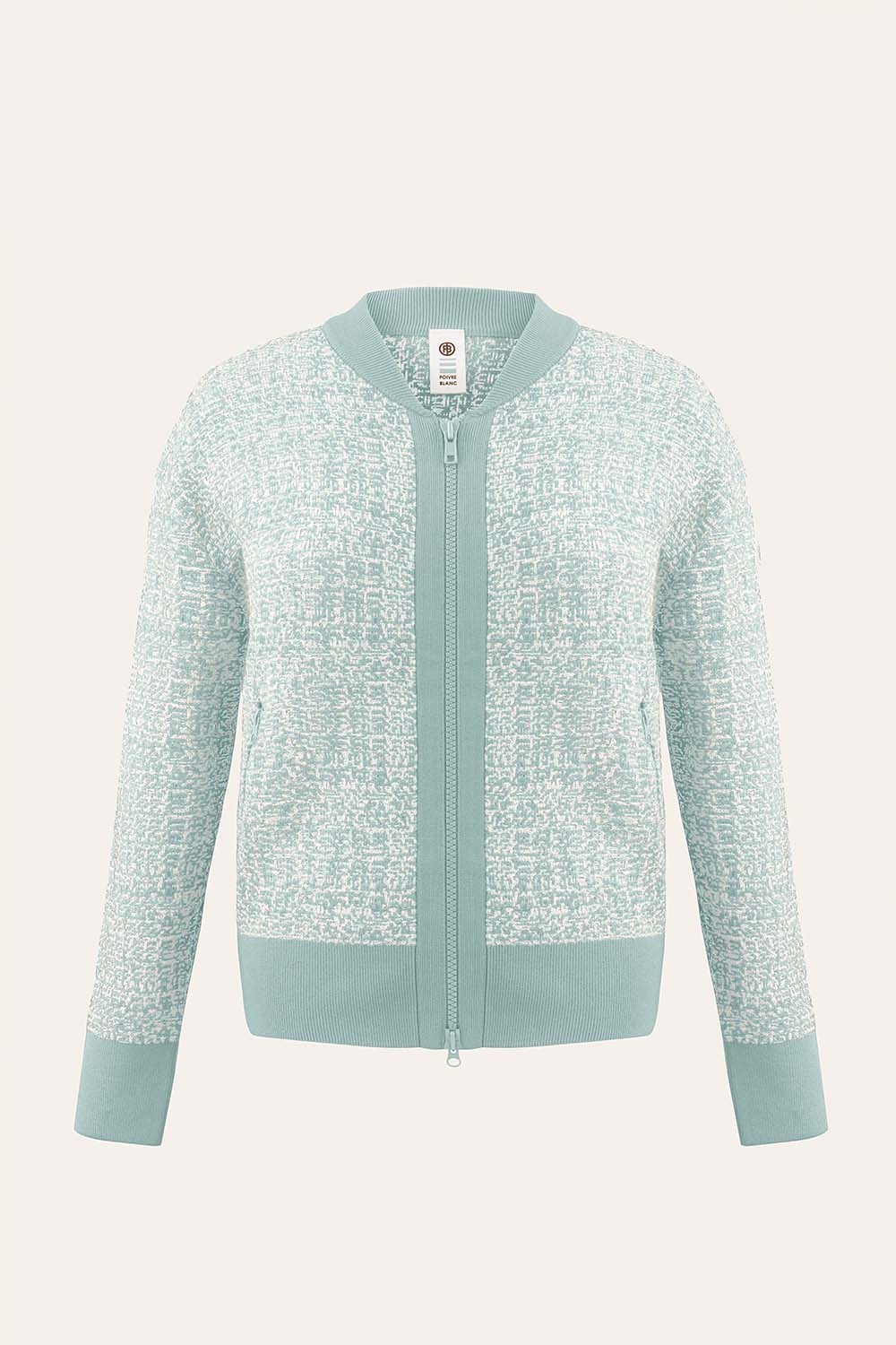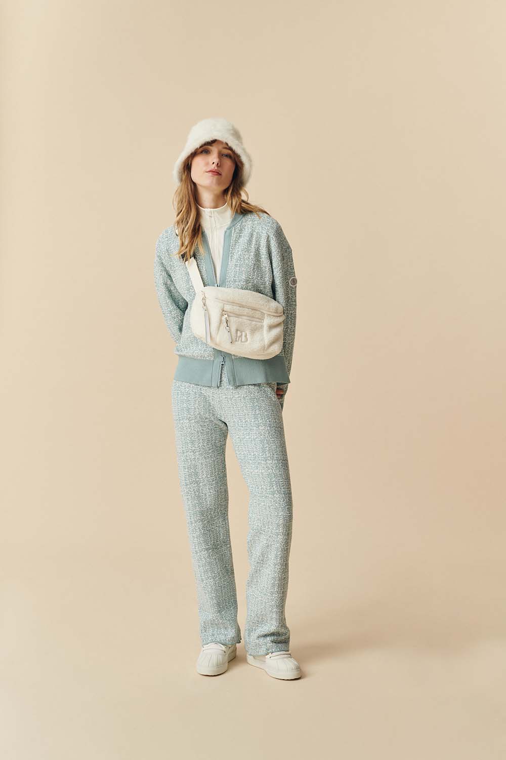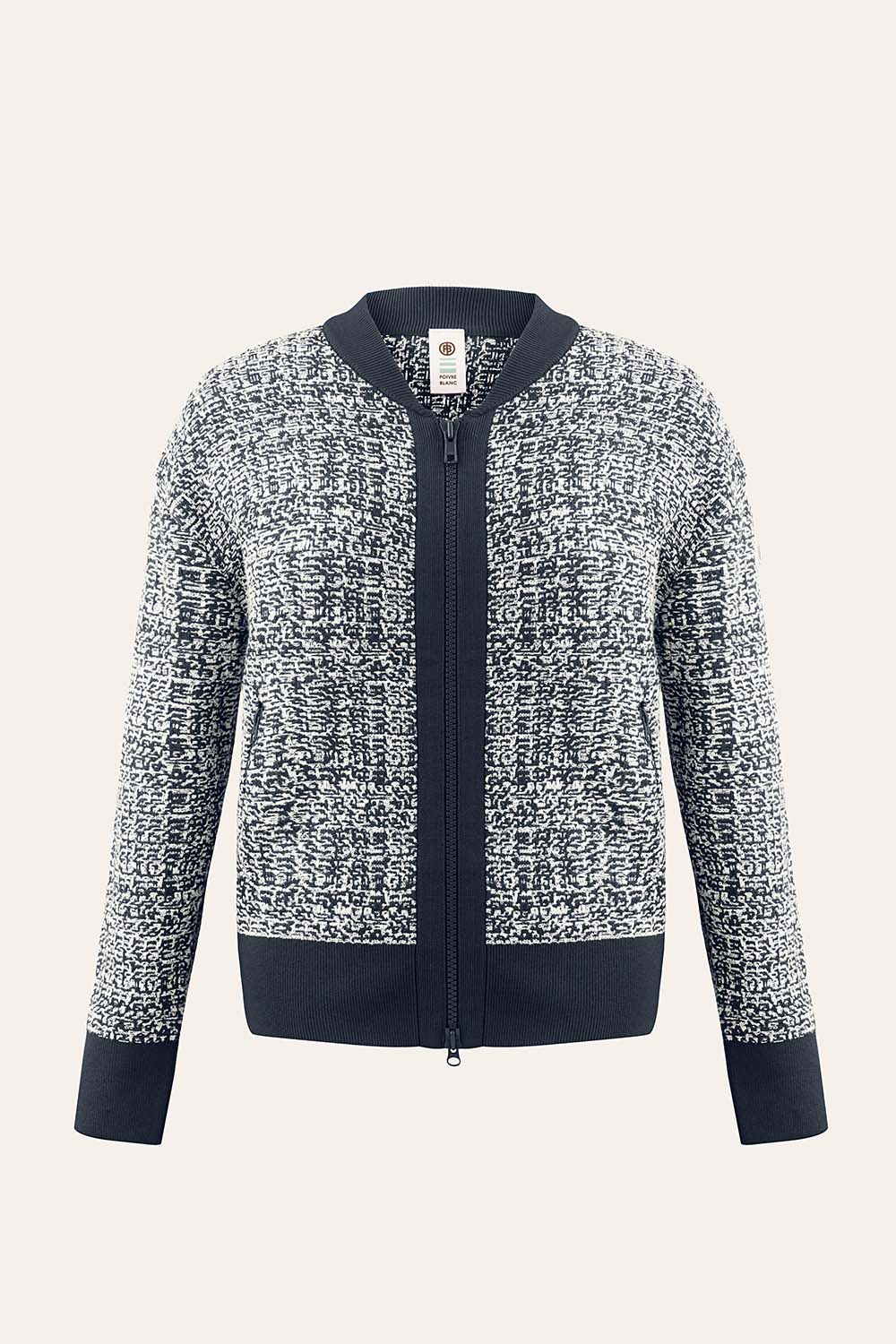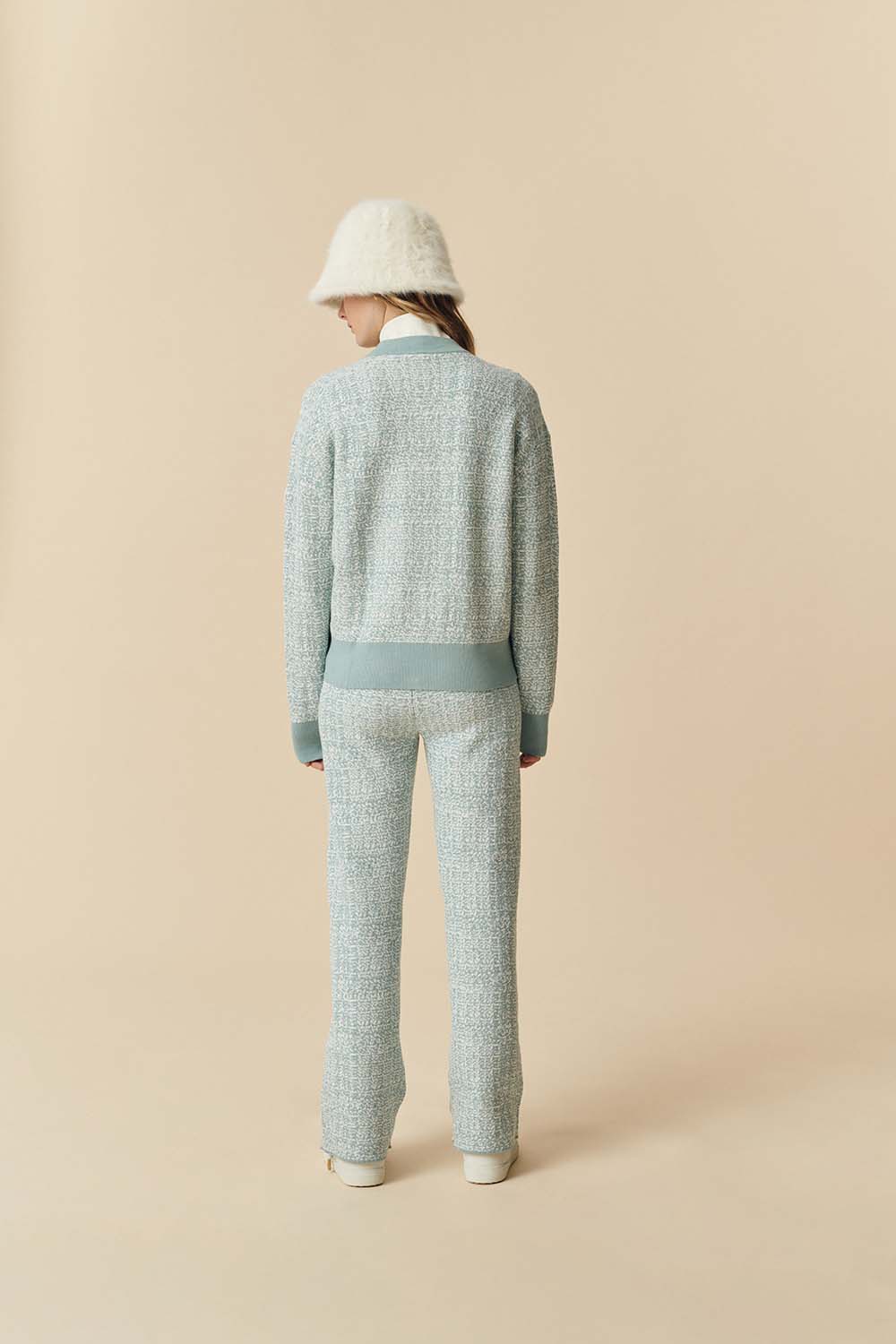 The Ava jacket designed in a silky and fancy jacquard knit can be combined with the Alma pants.