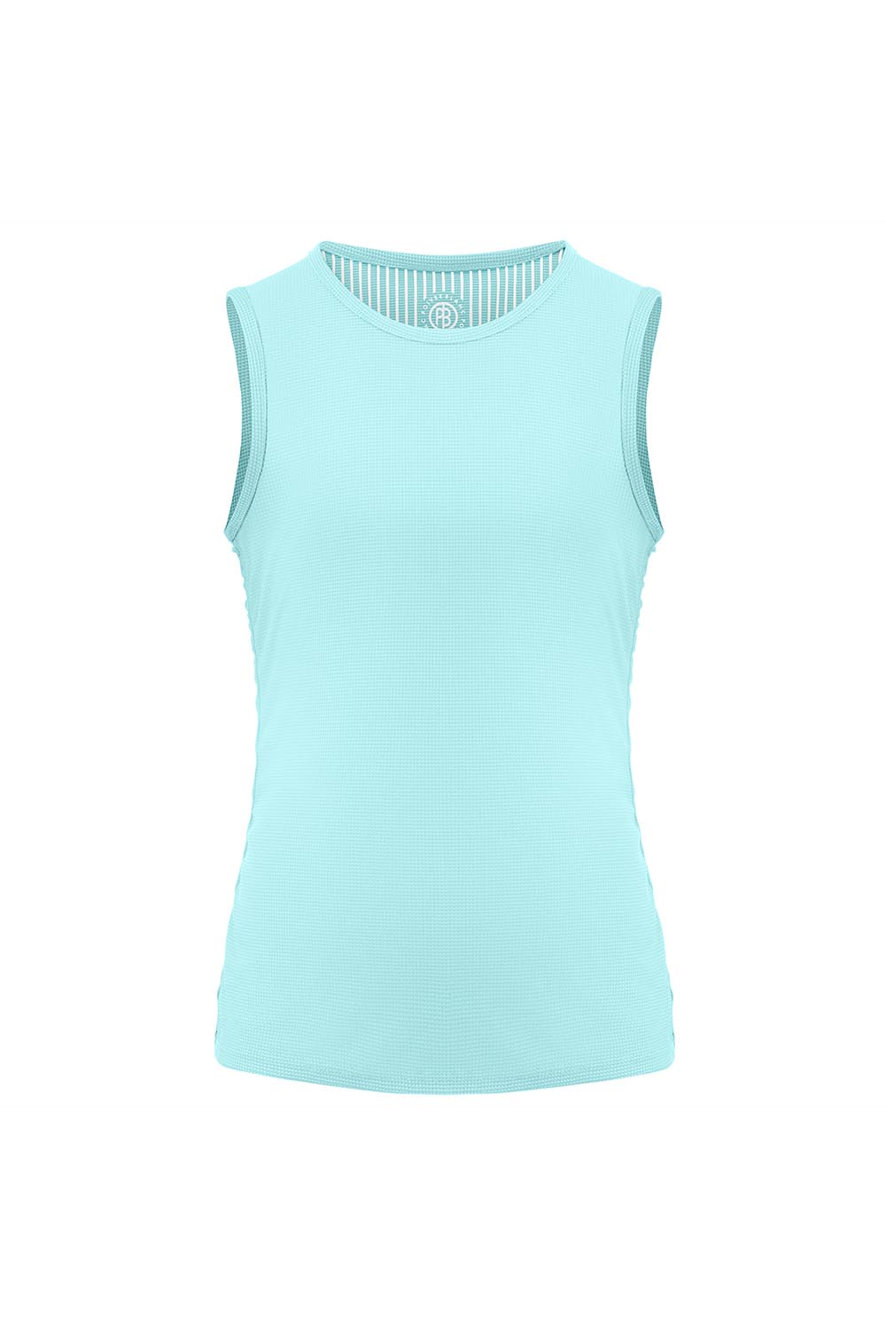 Débardeur encolure arrondie avec taille élastiquée pour un ajustement confortable.