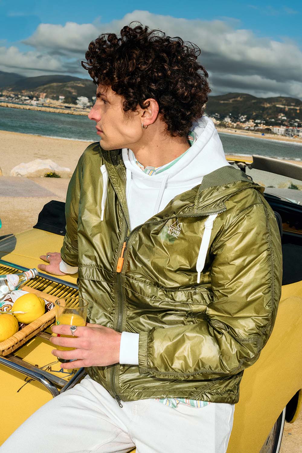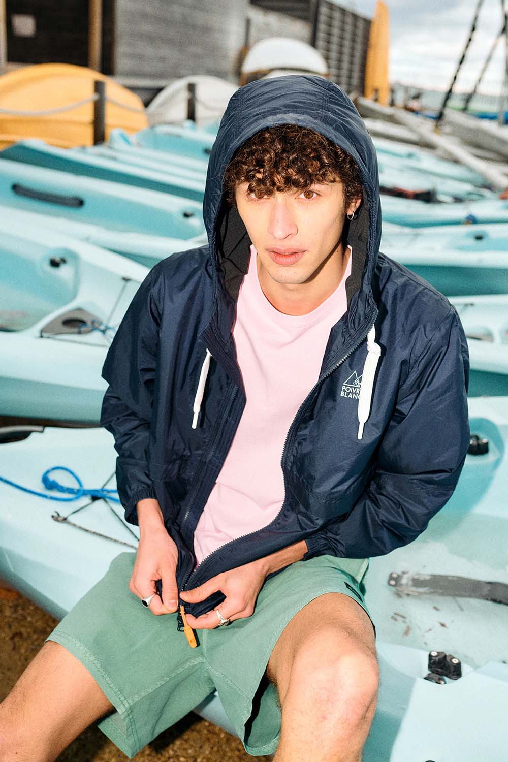 nTissu résistant au vent, capuche avec cordon de serrage, tirette de zip avec sifflet en plastique