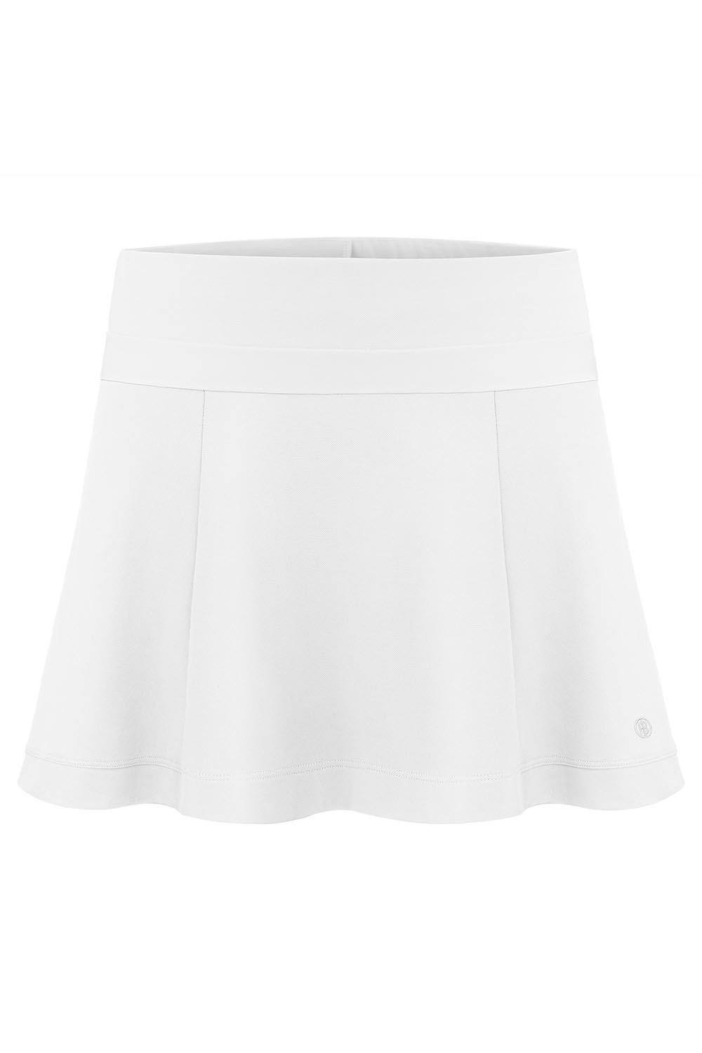 Jupe short avec taille élastiquée, poche plaquée sur la culotte intégrée, en matiere technique Piqué Meryl, naturellement doux.