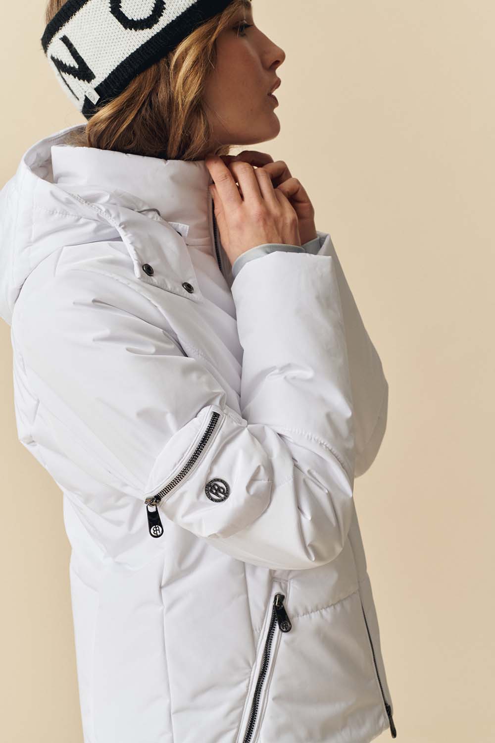 Le sac brassard Mini conçu en tissu de ski irisé est un petit format qui permet d’emporter l’essentiel sur les pistes.