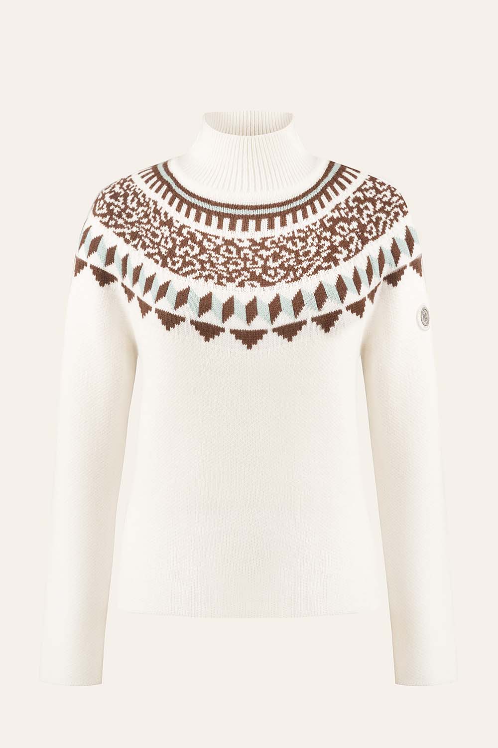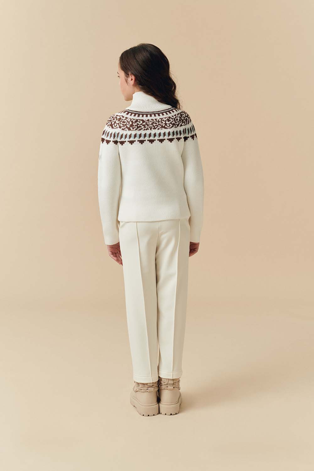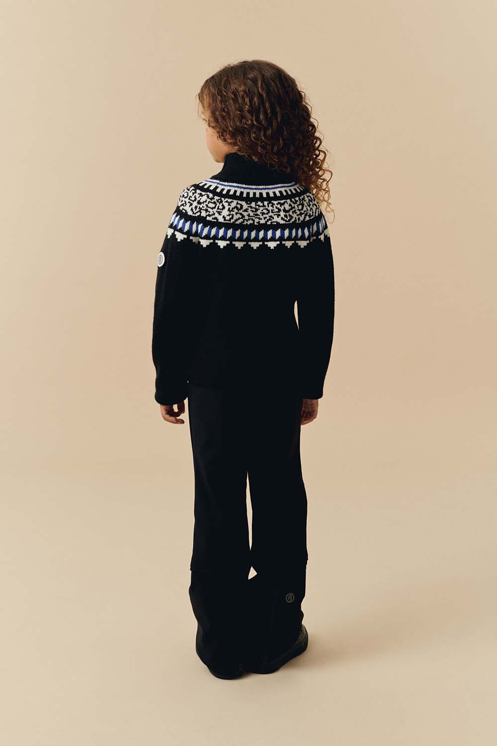 Sa coupe moderne et large est agrémentée de motifs jacquards géométriques