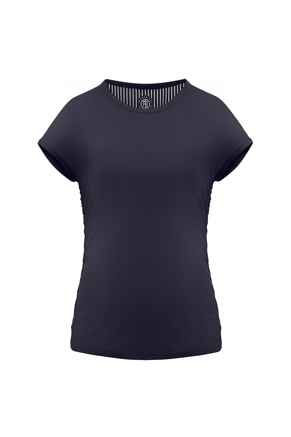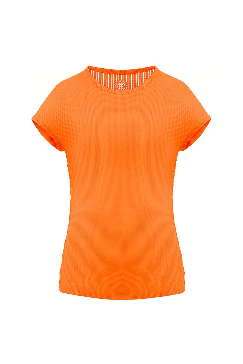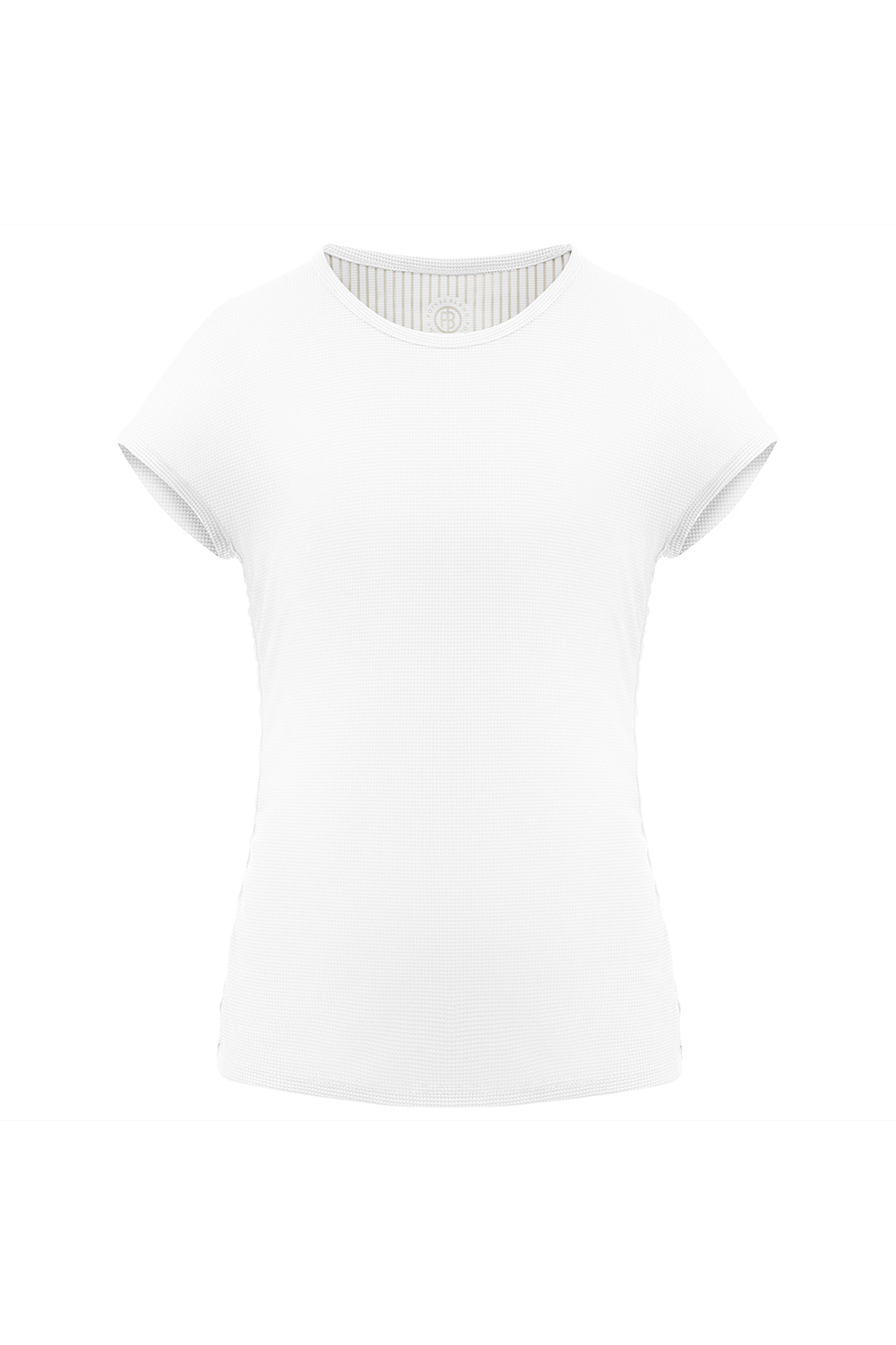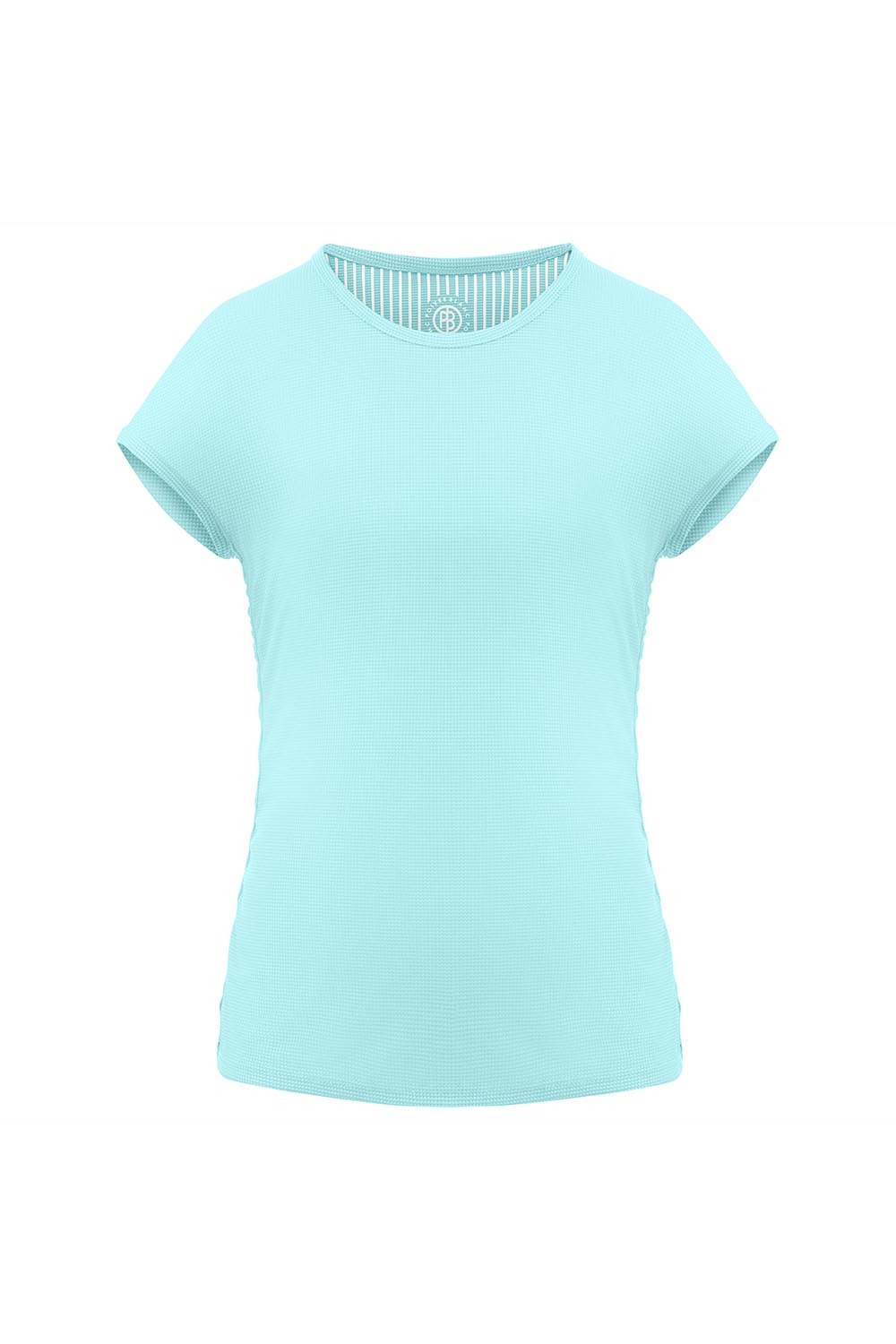 Tee-shirt ras du cou, couture latérale élastiquée pour tenue froncée. Tissu 100 % polyester recyclé séchage rapide, antimicrobien, facile d’entretien