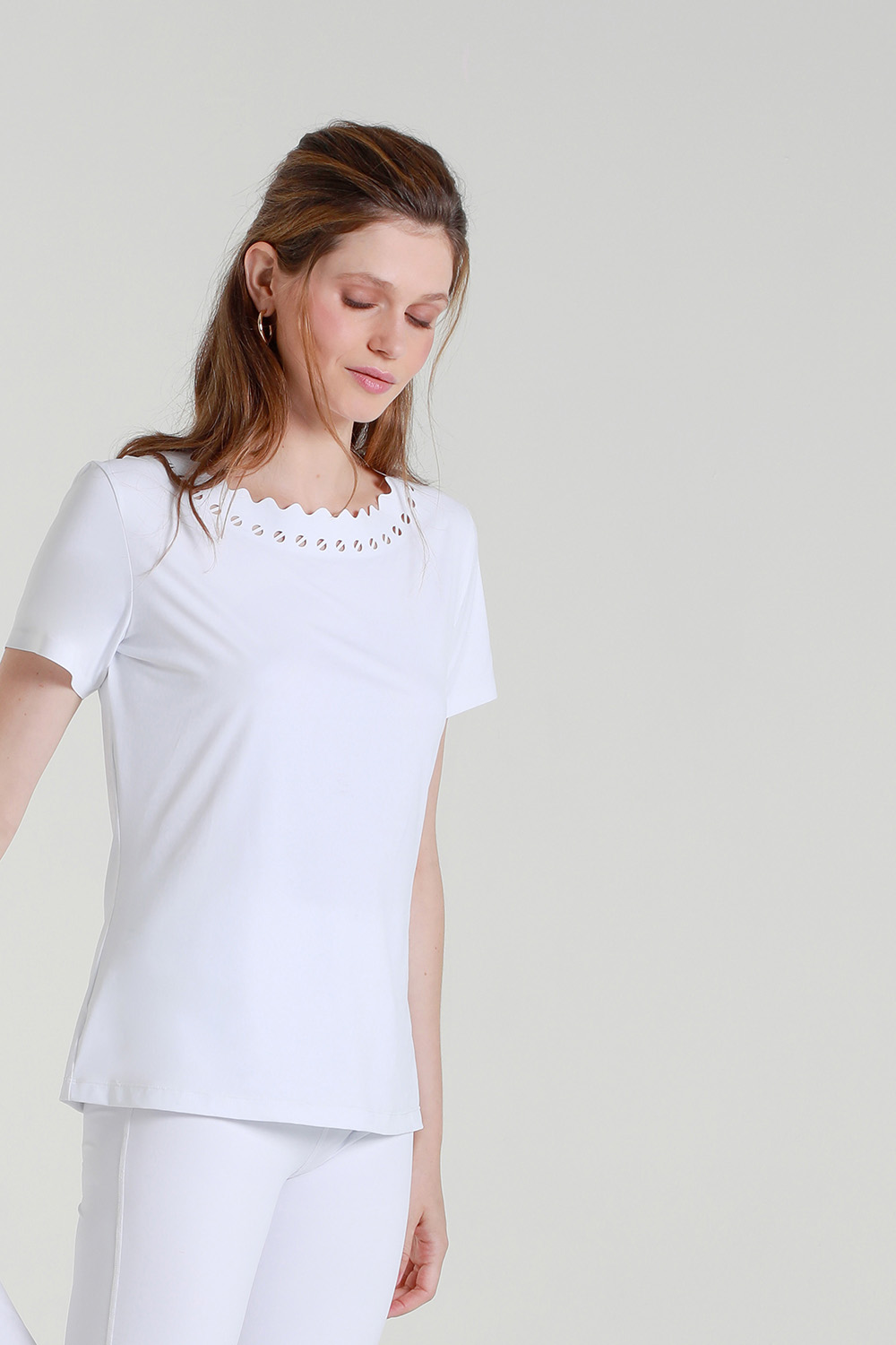 Finition élégante des bords collés de l’encolure et du bas des manches