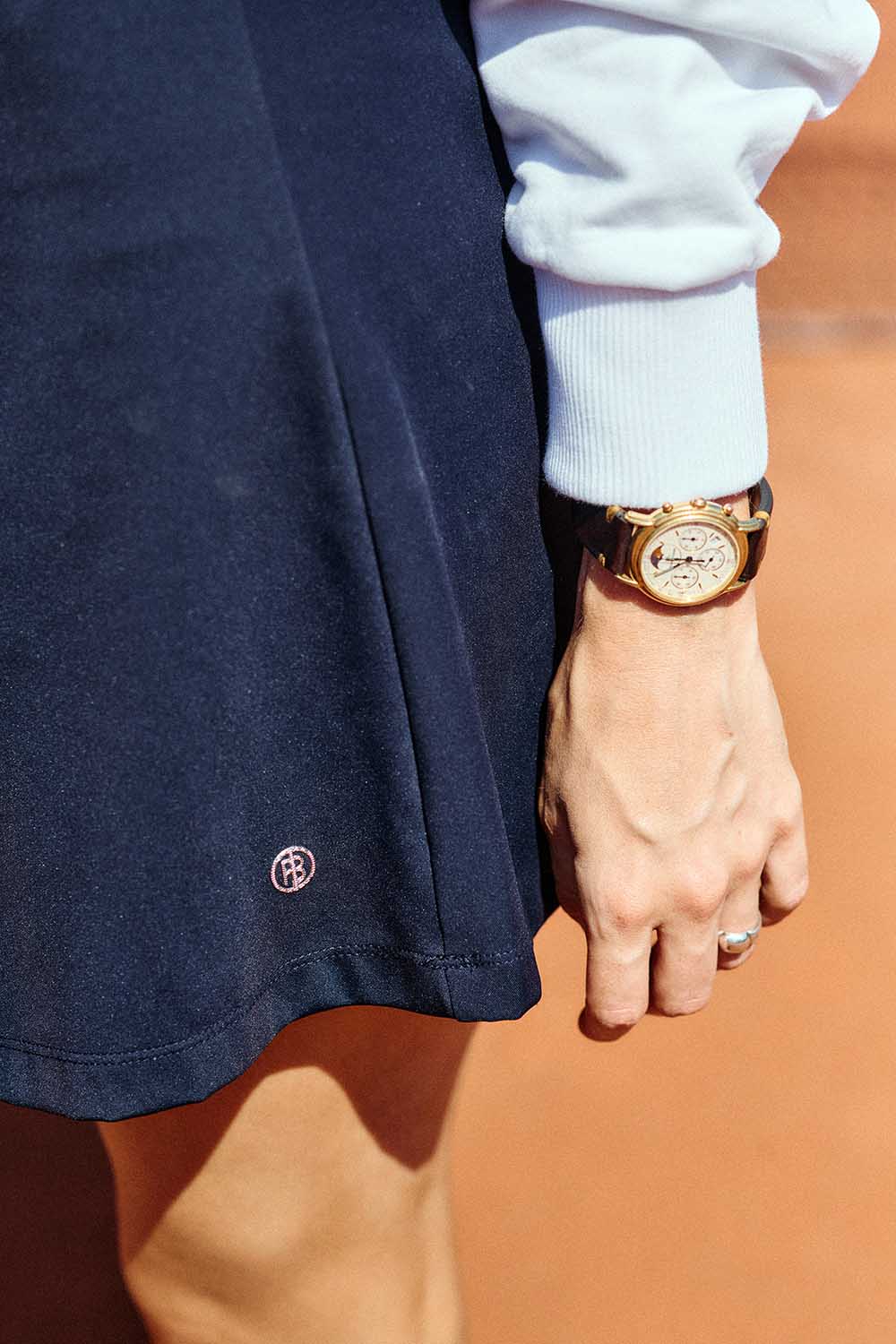 This skater-style skirt with built-in shorts, longer than a classic tennis skirt, offers a more feminine yet simple look. It features an elasticated waistband for comfort and a side pocket on the integrated shorts for holding tennis balls. The breathable, four-way stretch fabric not only provides greater freedom of movement but also protects against harmful UV rays.