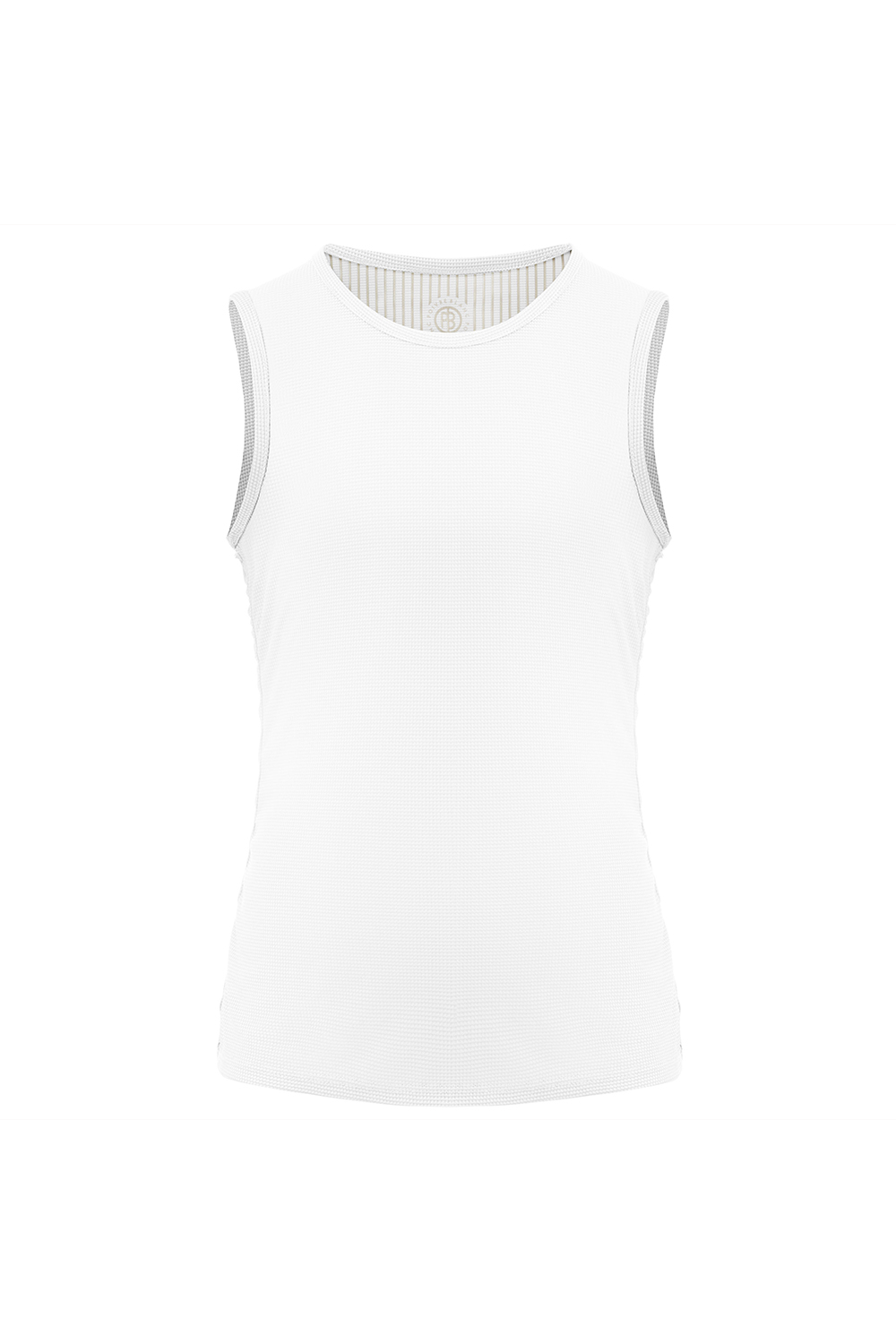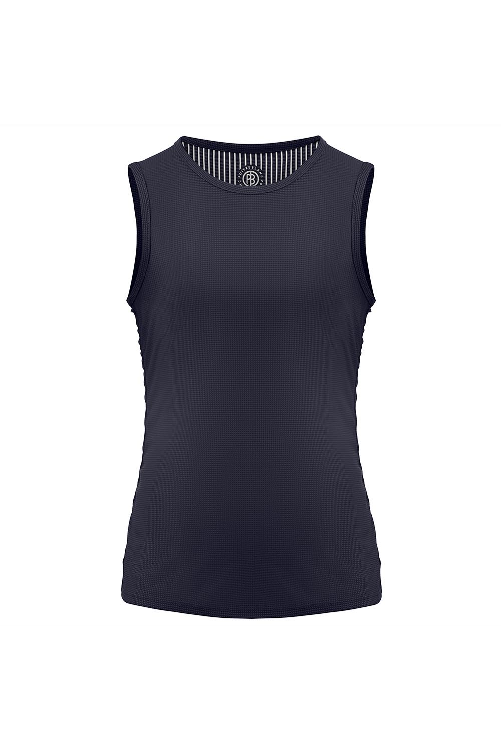 Débardeur encolure arrondie avec taille élastiquée pour un ajustement confortable.