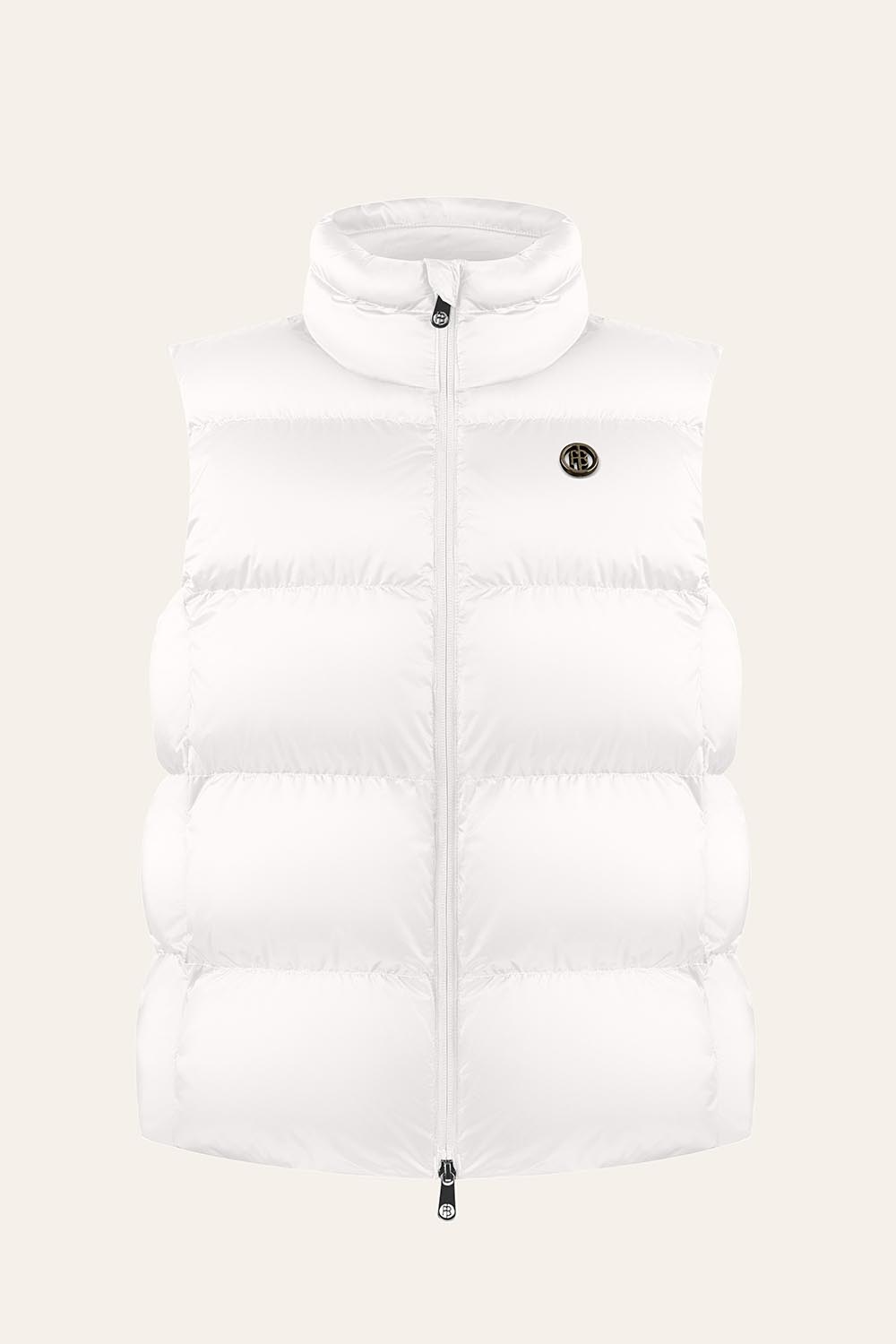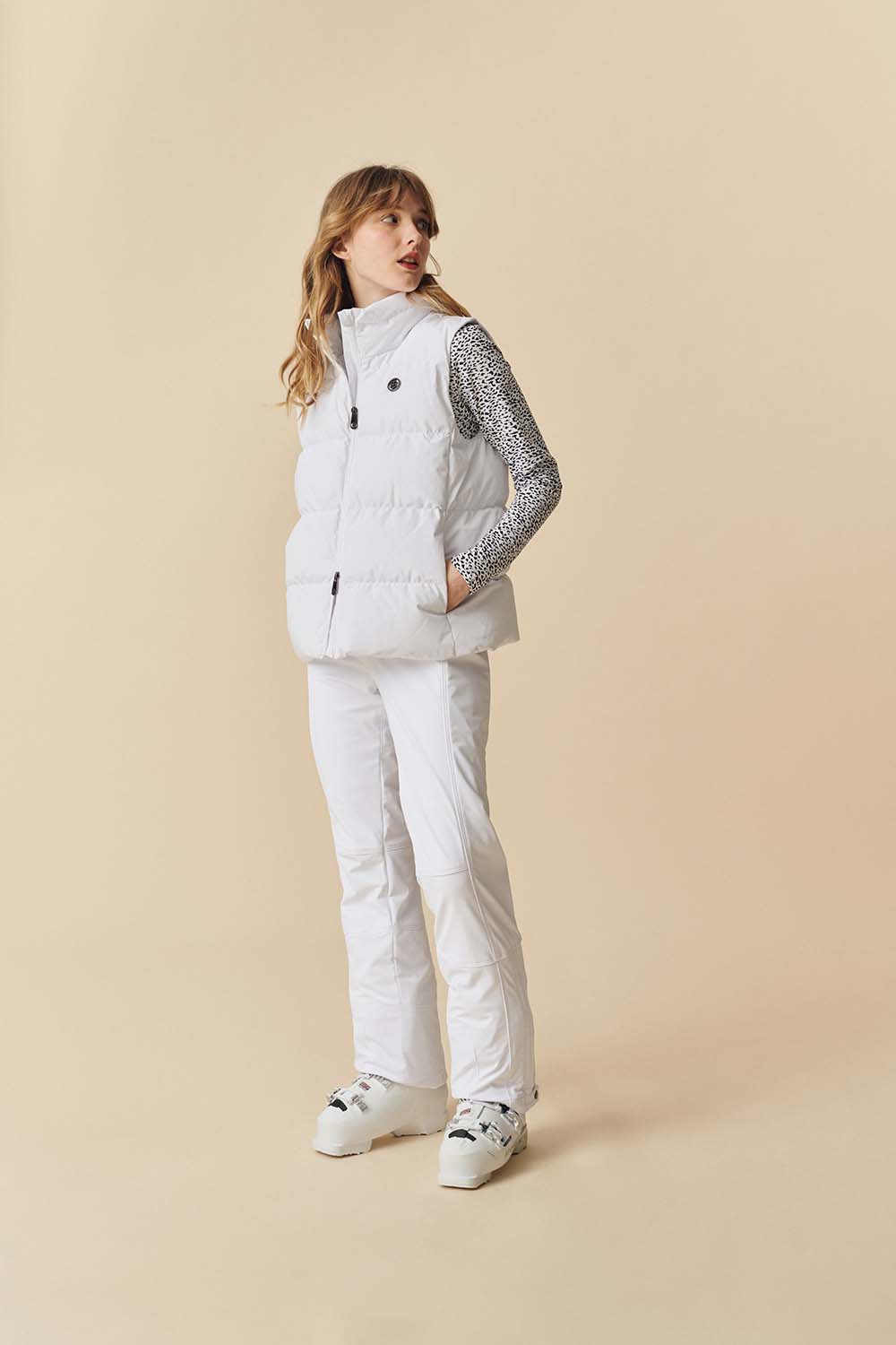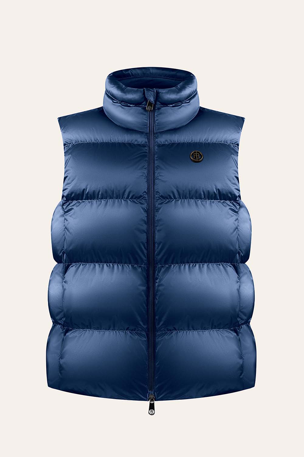 La veste doudoune sans manches Camila est conçu dans un tissu irisé, mat ou imprimé.