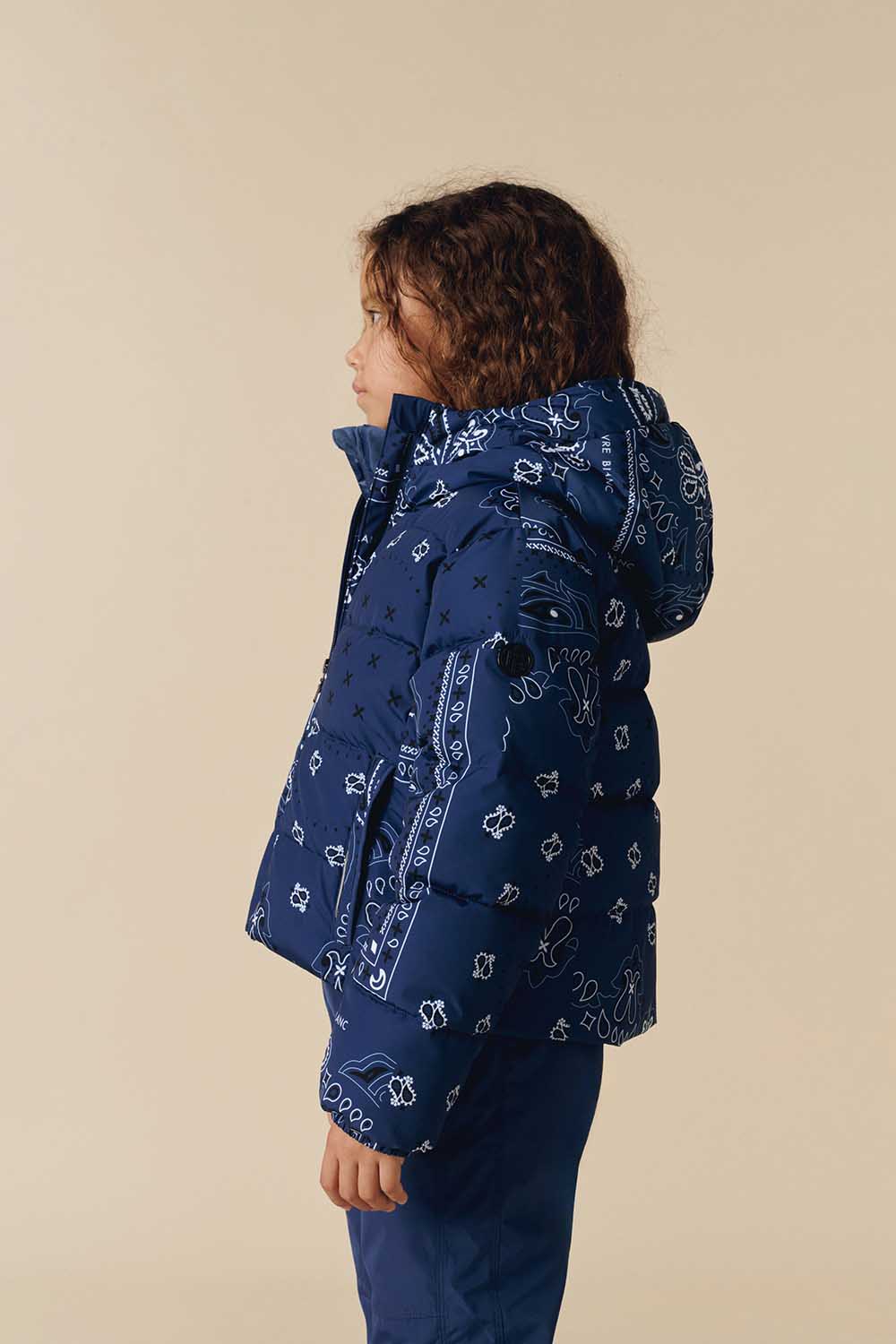 Une doudoune douce et moderne au motif Bandana pour les jeunes aventurières.