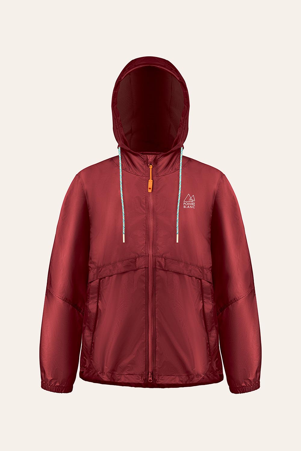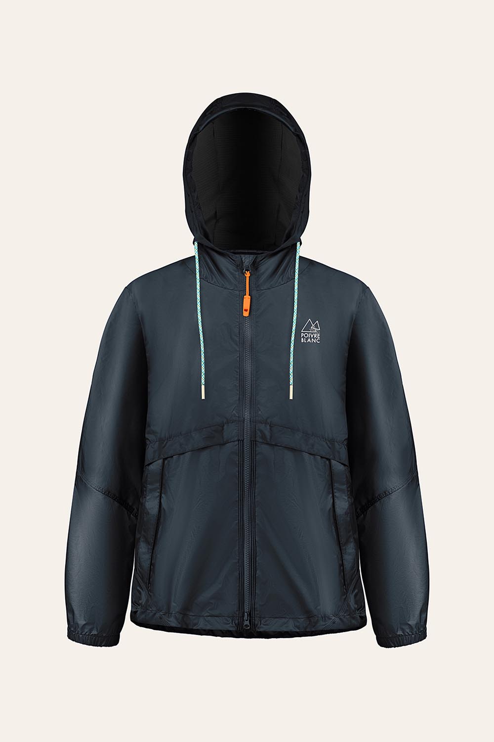 Tissu résistant au vent, capuche avec cordon de serrage, tirette de zip avec sifflet en plastique