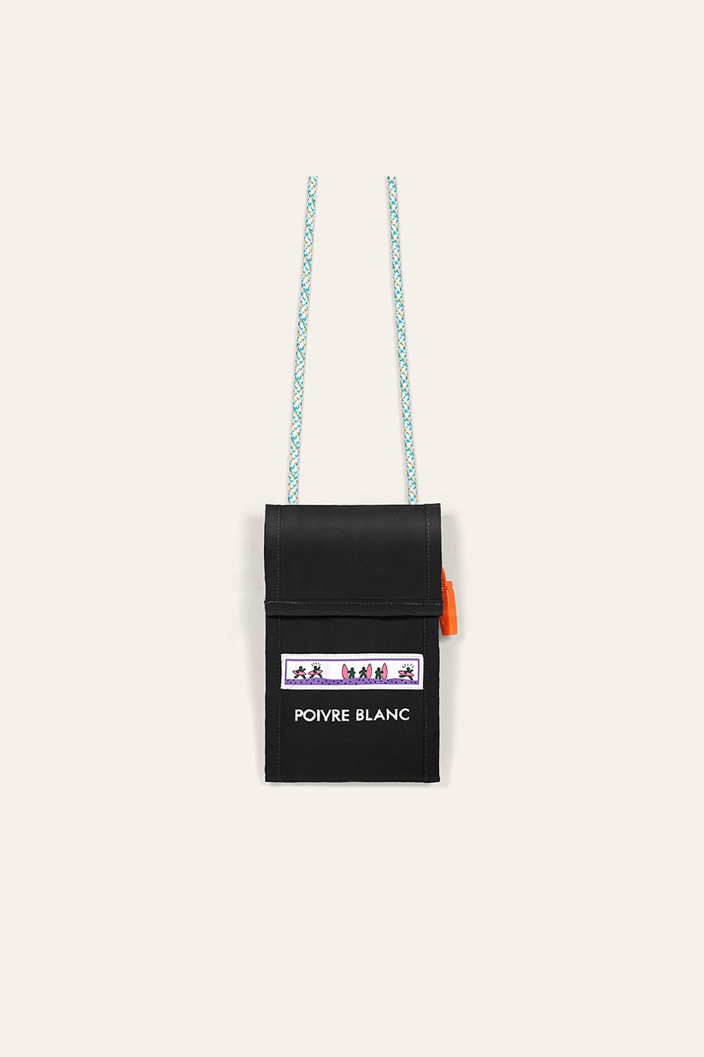 2491948Sac pour téléphone avec rabat fermeture velcro, cordon ajustable, poche filet, sifflet en plastique, L11 cm x H17 cm x P1 cm
