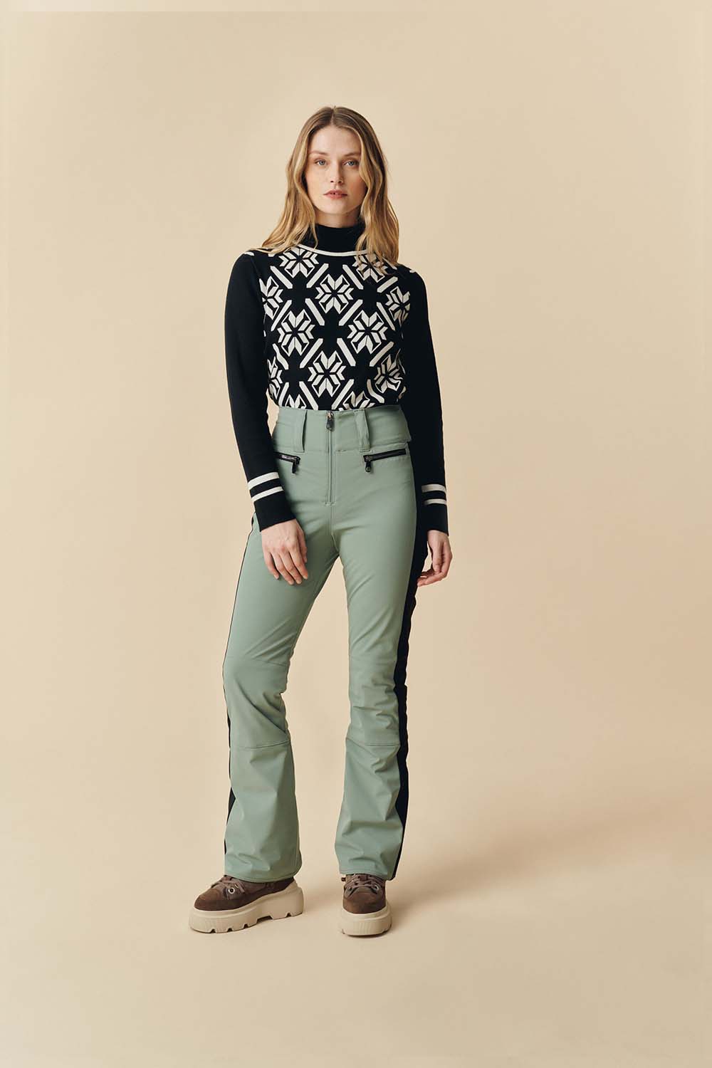 Le pantalon Elise est doté d’une ceinture haute qui souligne la taille et met en valeur la silhouette.