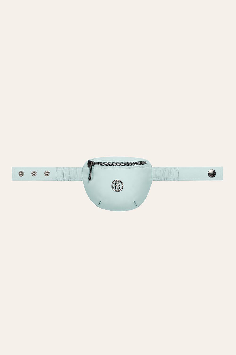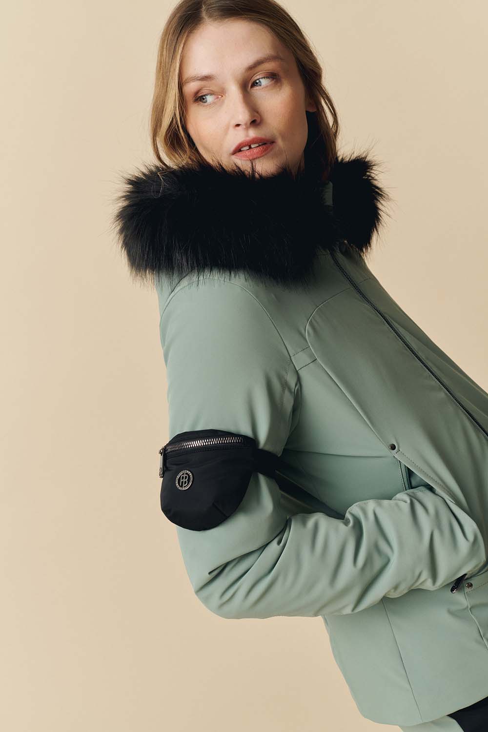 Le sac brassard Mini conçu en tissu de ski irisé est un petit format qui permet d’emporter l’essentiel sur les pistes.