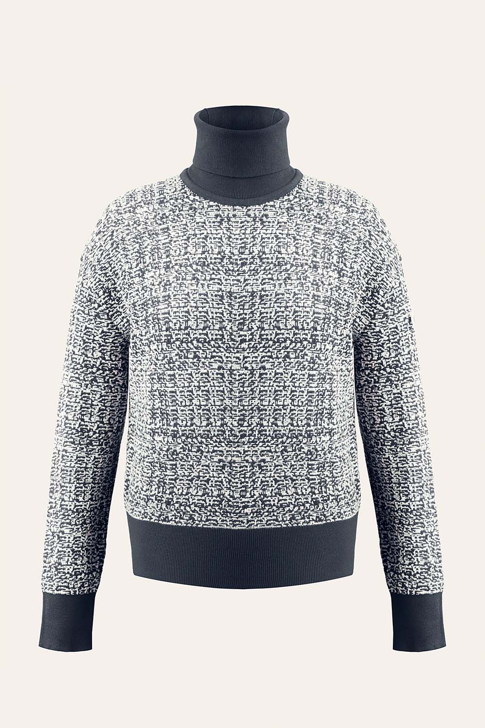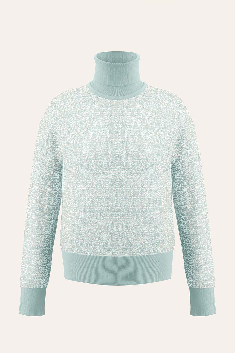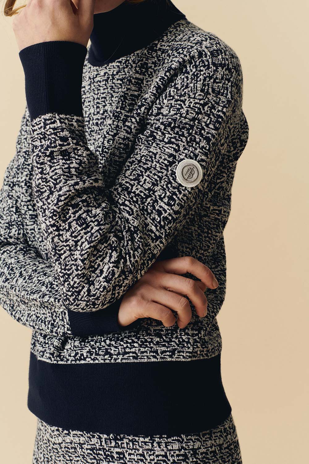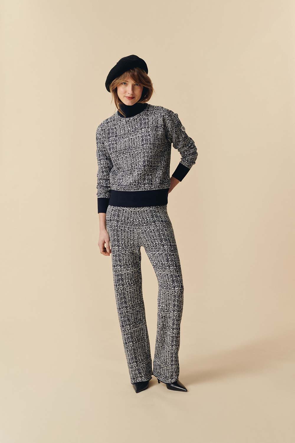 La pull Aria concue dans une maille jacquard soyeuse et fantaisie, peut être associé au pantalon Alma.