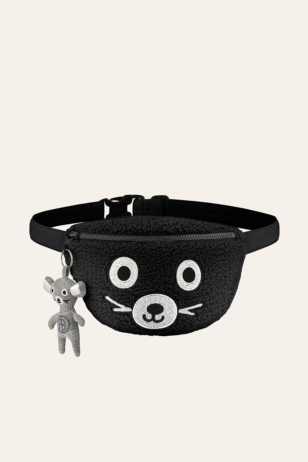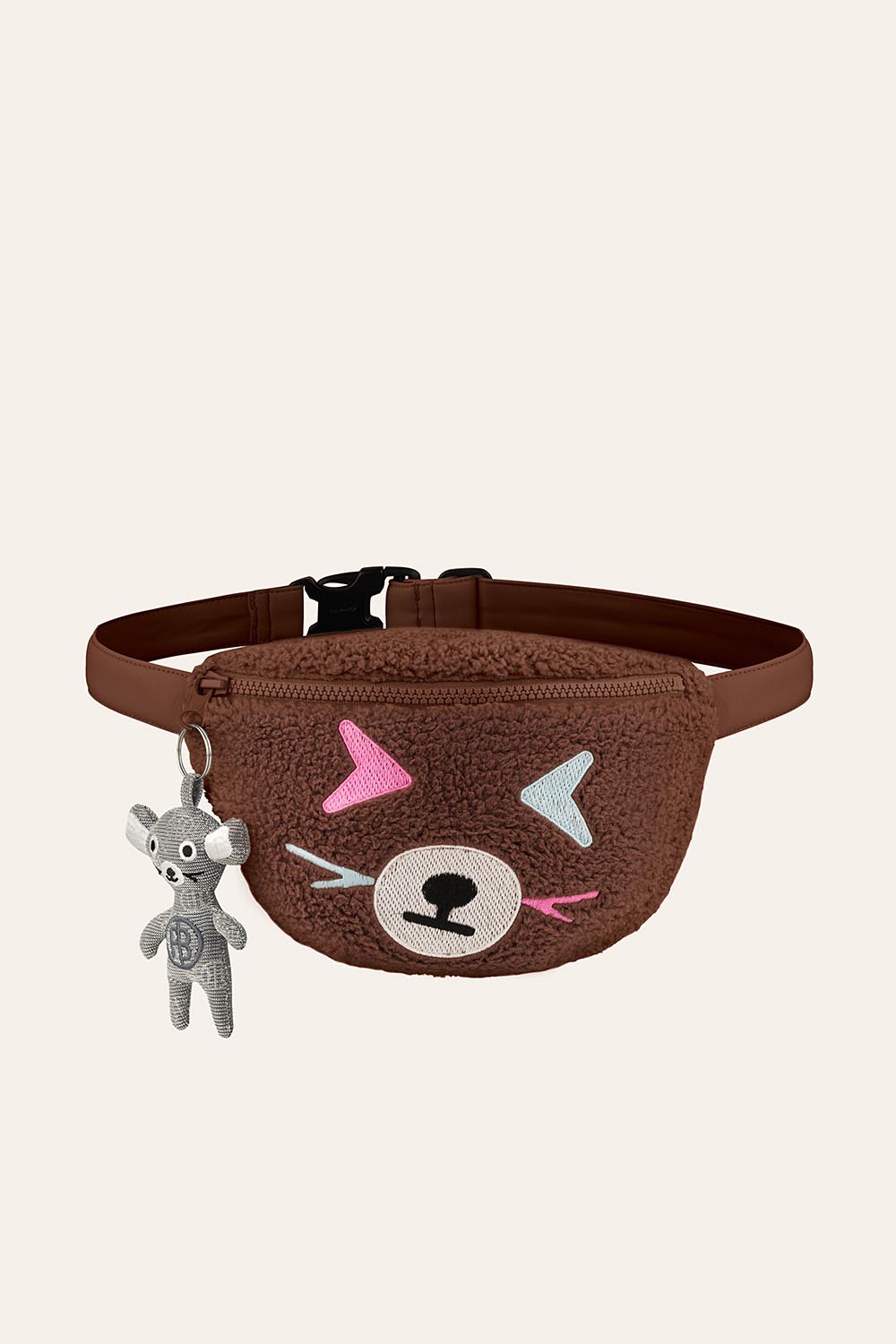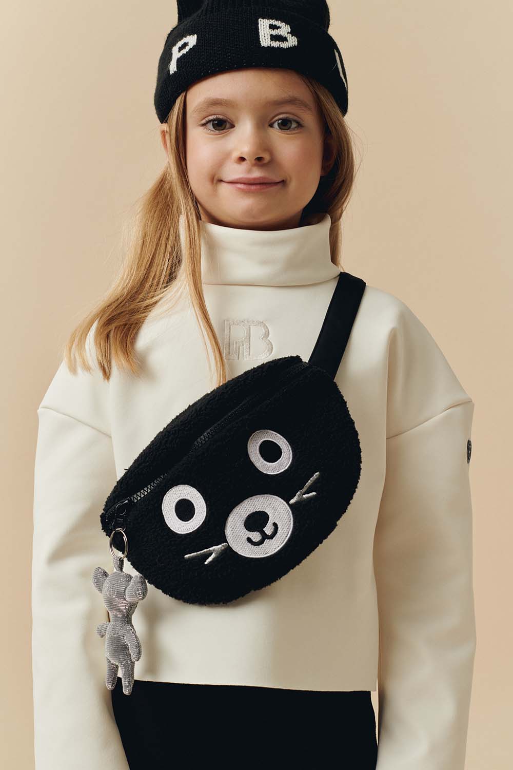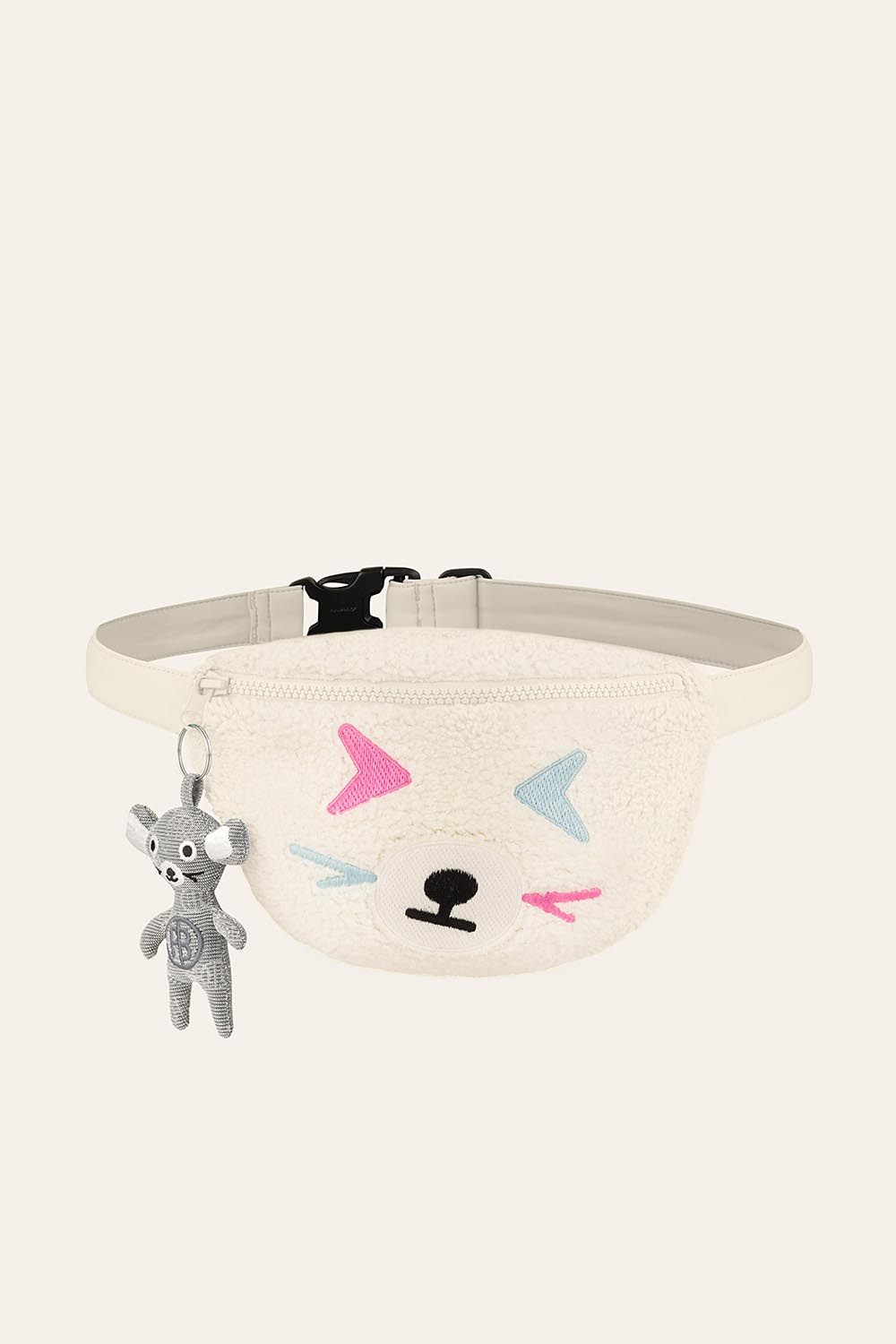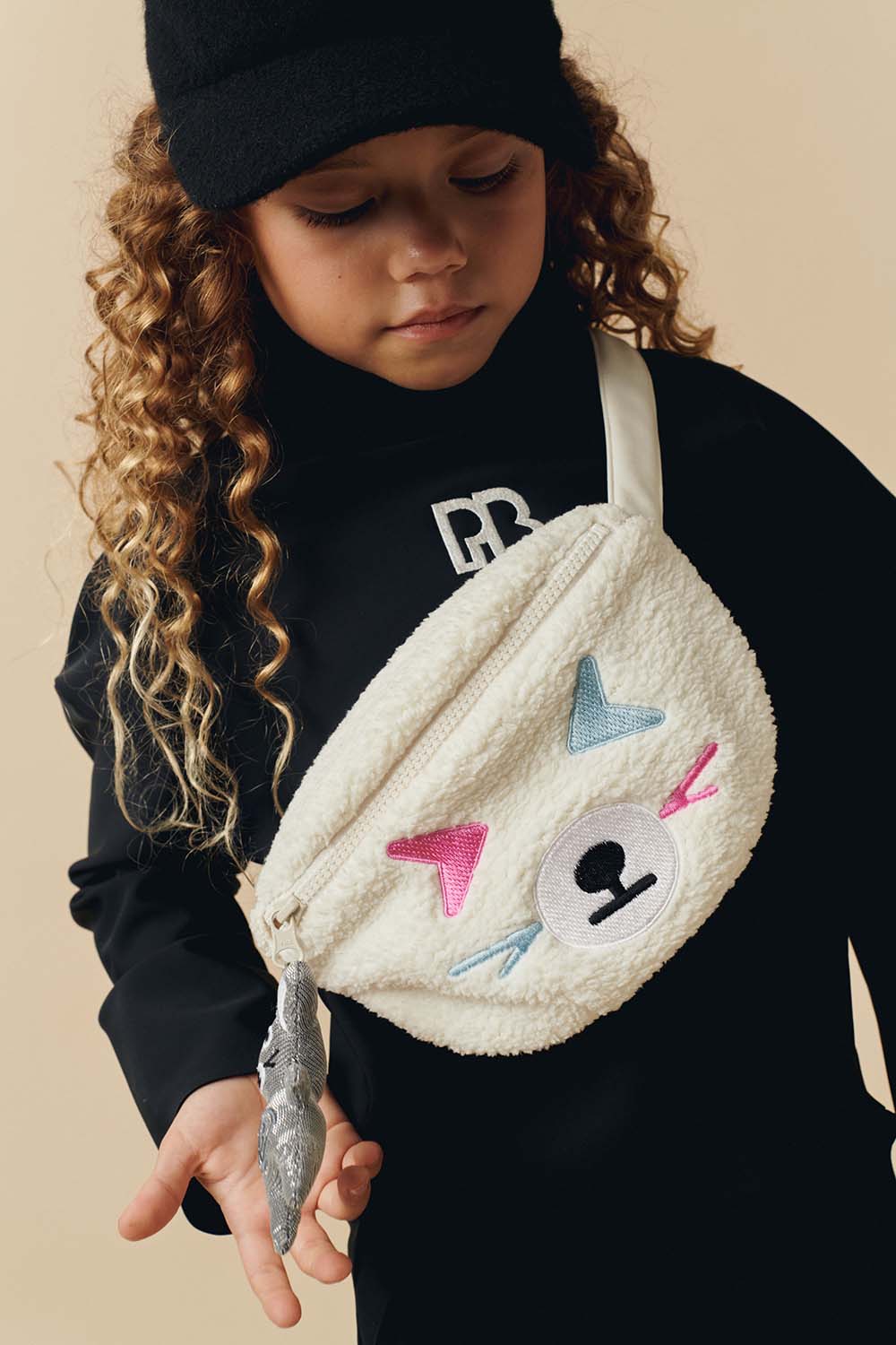 Petite banane en tissu sherpa avec zip YKK et broderie sur le devant.